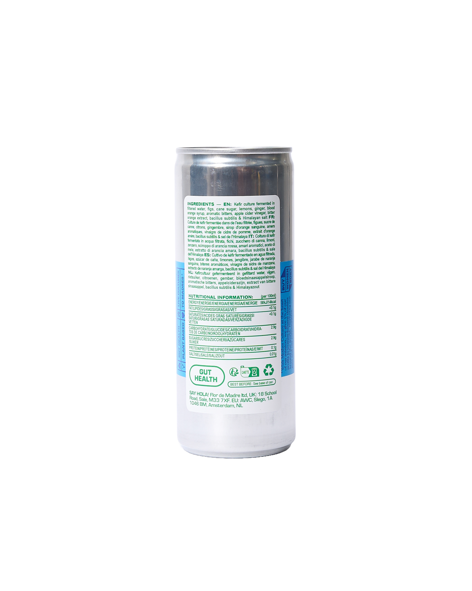 Agua De Madre is a water kefir that is created in a small-batch brewery in Hackney, East London. This is a four-pack in the flavour Blood Orange Bitters. Multi-layered and punchy; this citrus drink is bolstered with immune-boosting adaptogens; ashwagandha, ginseng and wolfberry. Enjoy straight from the fridge on an empty stomach.