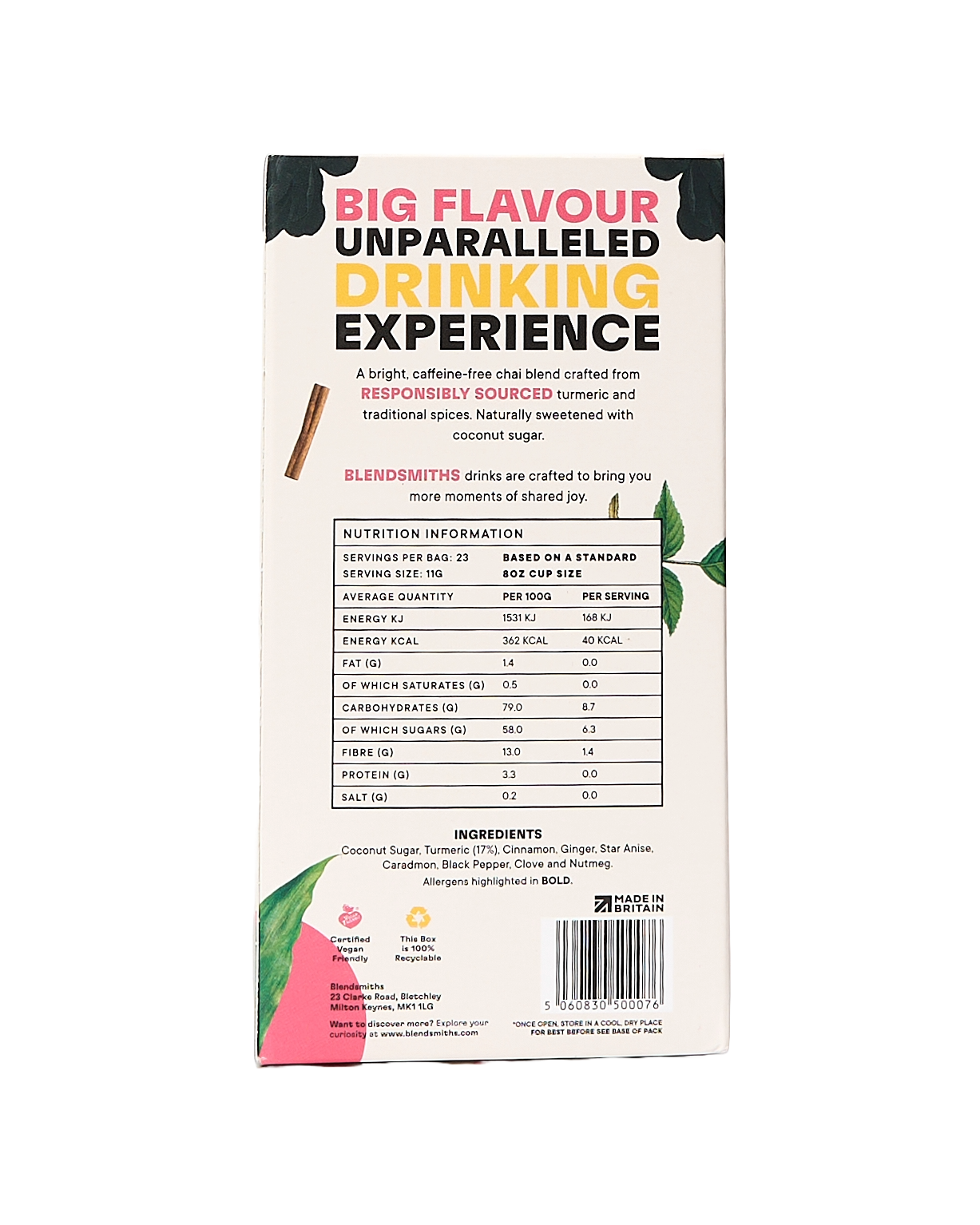 A warming yet refreshingly sweet blend of turmeric, cinnamon and other fragrant spices, ready to be mixed with your milk of choice. Designed to awaken the senses, this blend combines earthy and envigorating ingredients that balance out turmeric's full-bodied flavour.