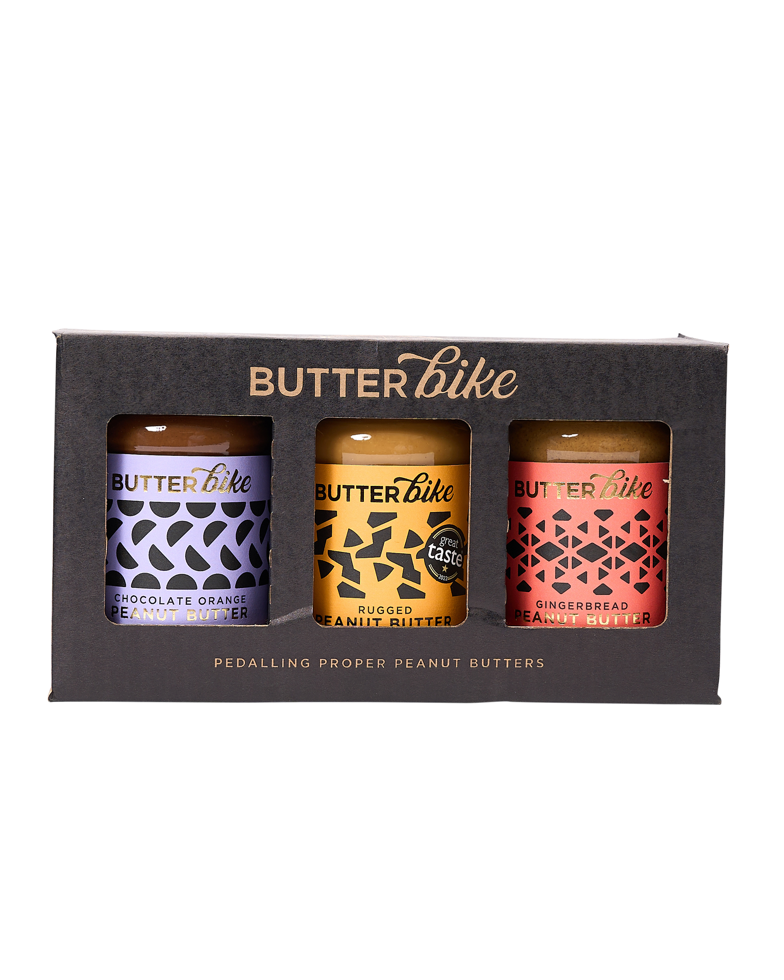 Created by passionate peanut butter lovers, Butter Bike Co Peanut Butters puts their Argentinian peanuts as the star of the show. This Gift Pack brings together three festive favourites full of smooth chocolate, sweet spices and the best-selling classic crunchy peanut butter. Ideal for Christmas gifts, the Festive 3-Jar Gift Pack includes: