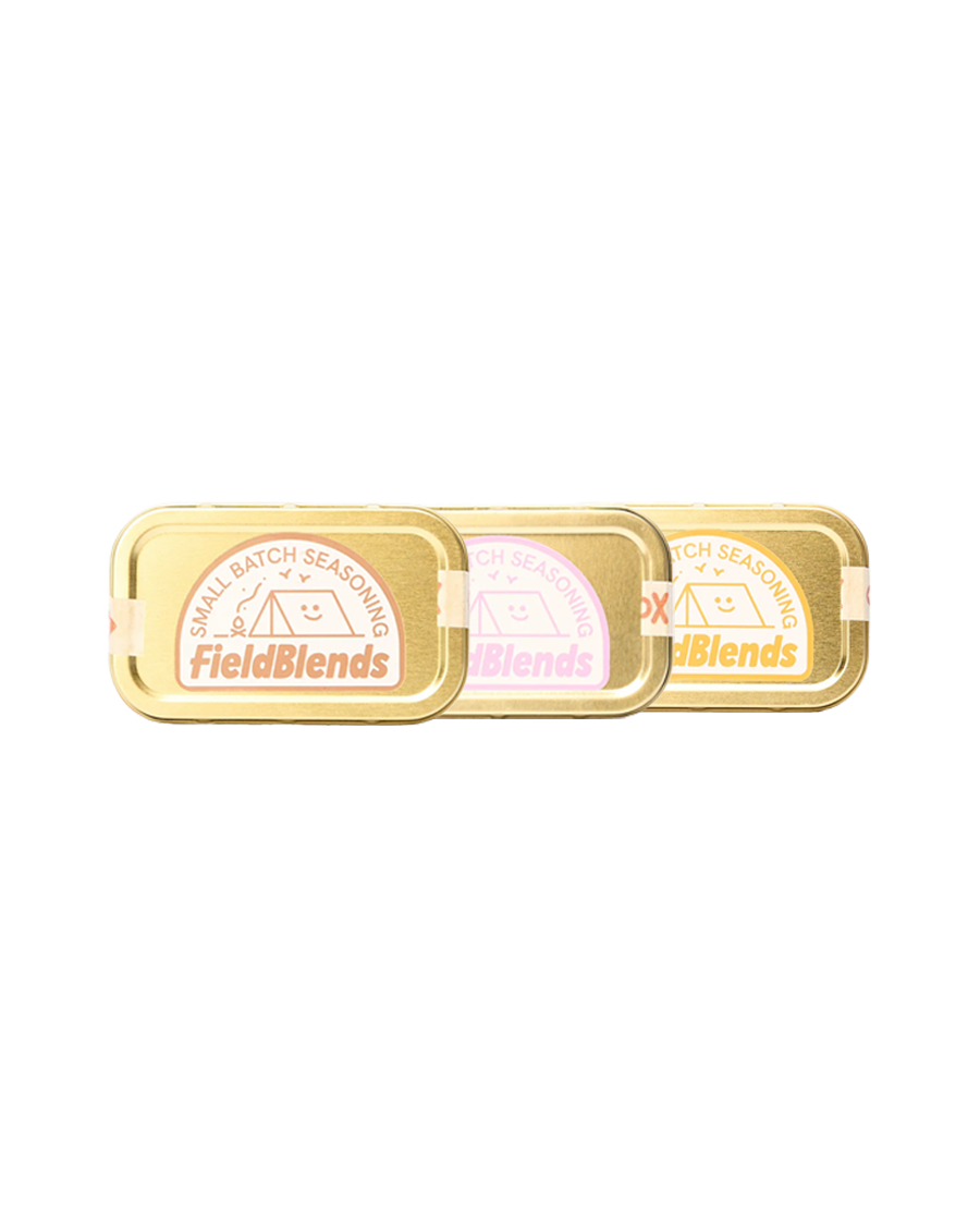 Three small-batch blends from Field Blends built for everyday cooking—indoors or out. Bright Lemon, Sumac & Herbs, bold Pink Peppercorn, Sea Salt & Garlic, and smoky Chilli & Coffee Rub bring depth to anything from veg to meat. Simple, versatile, and made to go where you do.