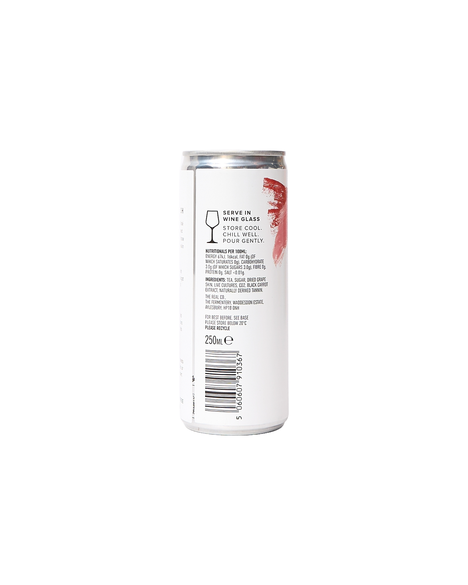 A light-bodied alcohol-free sparkling rosé made from fermented loose leaf tea and red grape skin, with subtle notes of summer fruits and soft nougat. Buttery and well-rounded on the palate, finishing with hints of vanilla-oak. All natural, vegan, and gluten free—perfect with roasted veg, seasoned meats, or fruity desserts. ABV: 0.5%.