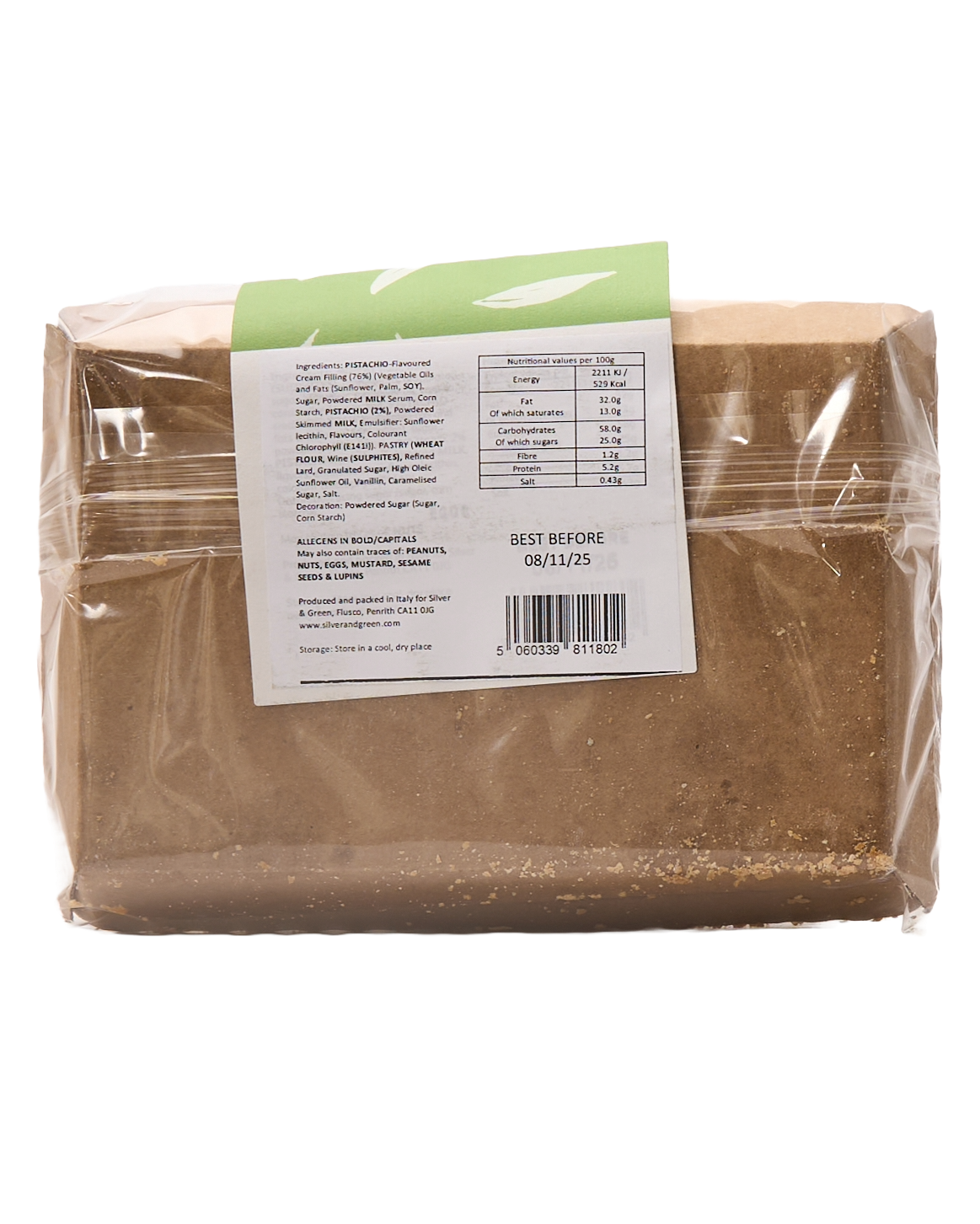Sicilian pastry shells oozing with Pistachio cream with a light dusting of icing sugar. Produced in a family bakery nestled in the Appenine mountains of the Emilia Romagna region of Northern Italy. These are the perfect accompaniment to a hot brew, or as something sweet to finish a meal in style.