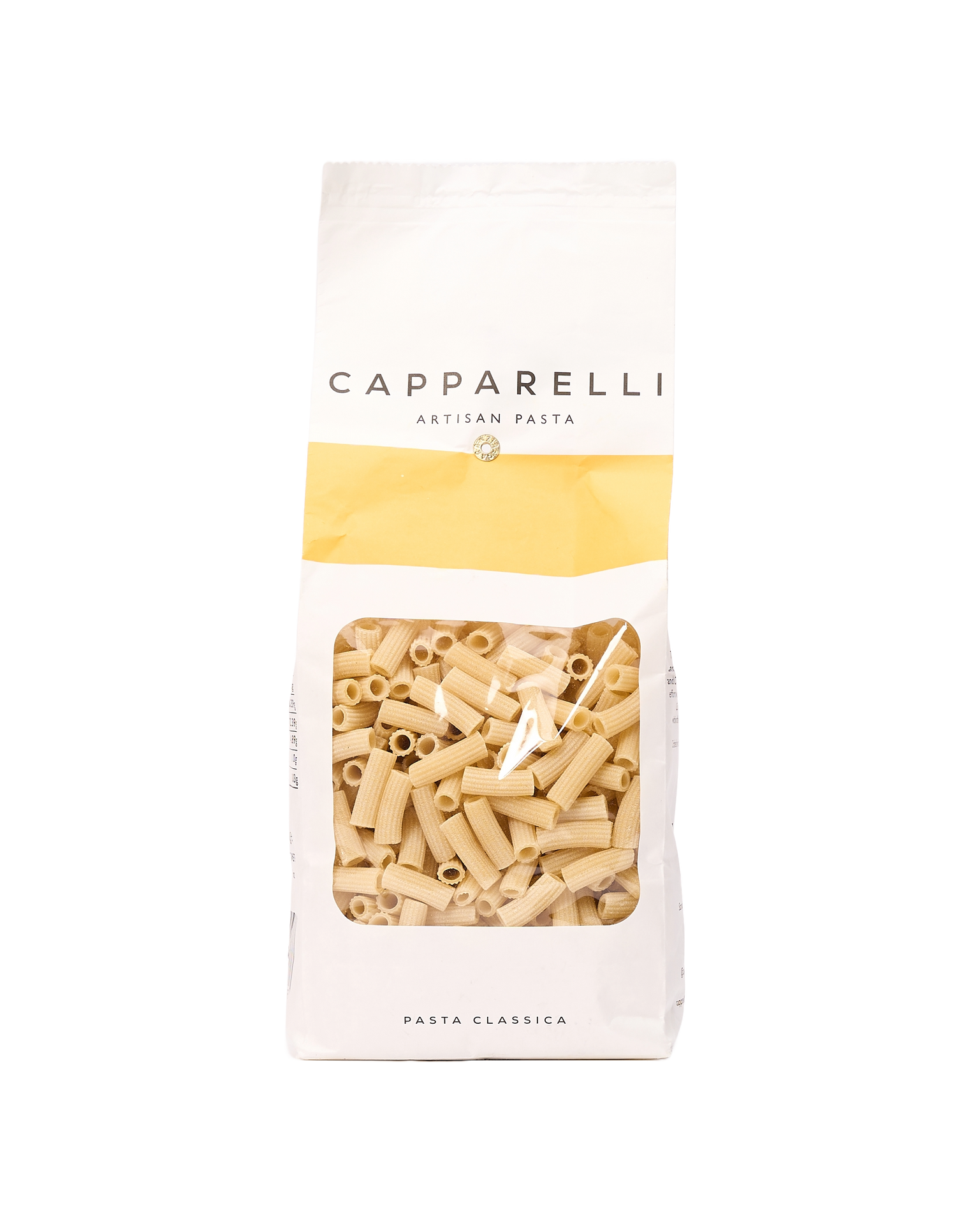 Maccheroni Rigate Artisan Premium Pasta is a high-quality, hand-crafted pasta made from 100% Italian durum wheat. Known for its ridged texture, this pasta holds sauces exceptionally well, making it ideal for flavorful, hearty dishes. The pasta is bronze-drawn and slow-dried, techniques that preserve the wheat’s natural flavors and give it a firm, authentic texture. It has a slightly nutty, wheaty flavor with a satisfying, al dente bite. The taste is clean and subtle, enhancing and carrying the flavors of any accompanying sauce beautifully. This pasta is perfect for rich sauces, such as tomato-based ragù, creamy mushroom sauces, or a classic marinara with fresh basil.