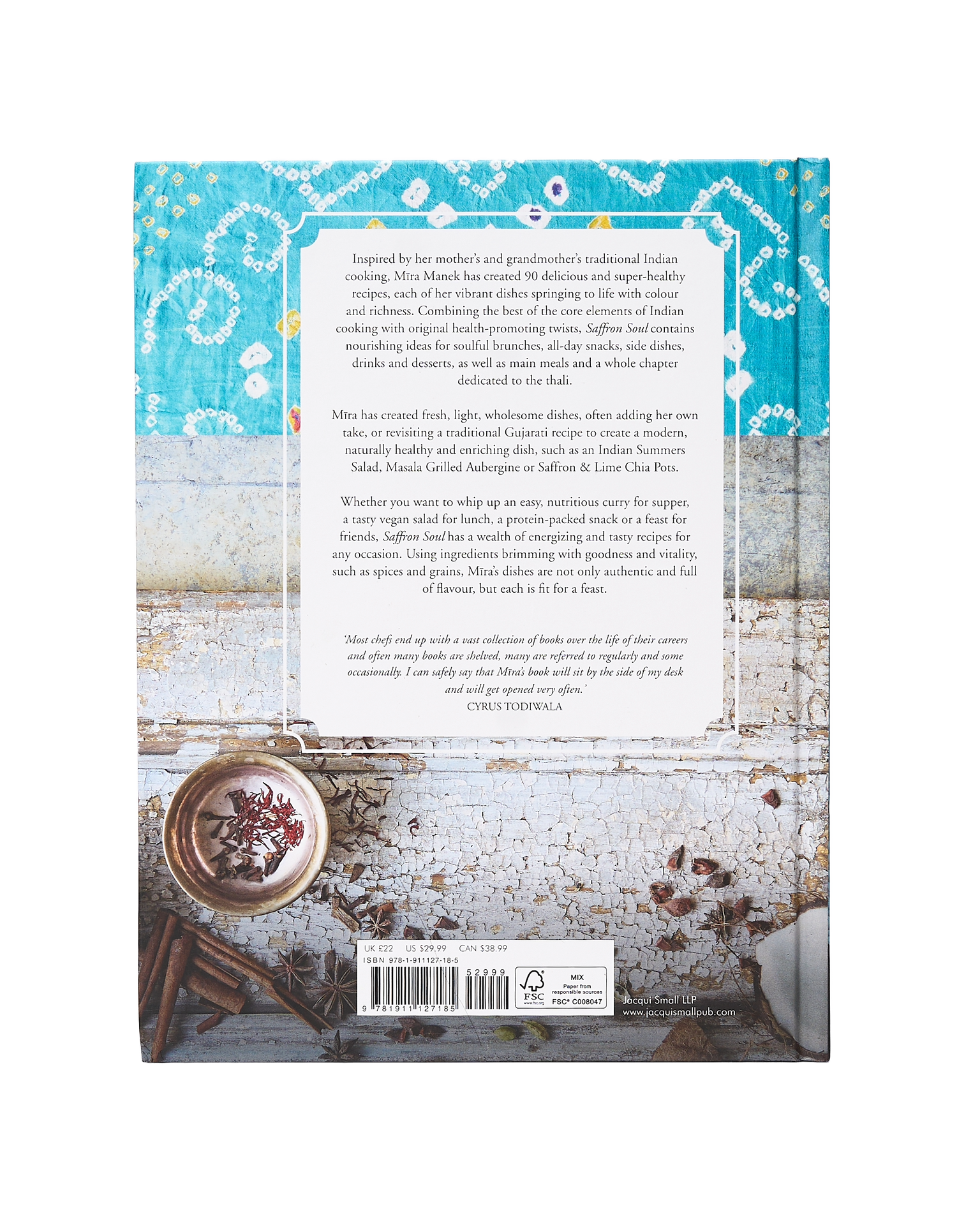 Chai by Mira started in the heart of a family kitchen, where Mira, her mother, and grandmother blended their own chai spice, passing down a tradition of warmth and comfort. Mira Manek's celebrates her family's heritage and traditions in this take on Gujurati Indian food, rich with beautiful dishes and reminiscences of Manek's family roots. Inspired by her mother and grandmother's cooking, Mira Manek's style of food is a modern interpretation of the Indian classics. With recipes such as Indian Summer Salad, a Thali, a Masala Almond Milk or a Mango Shrikhand Cheesecake, Saffron Soul combines the best of the core elements of Indian cooking with original health-promoting twists.