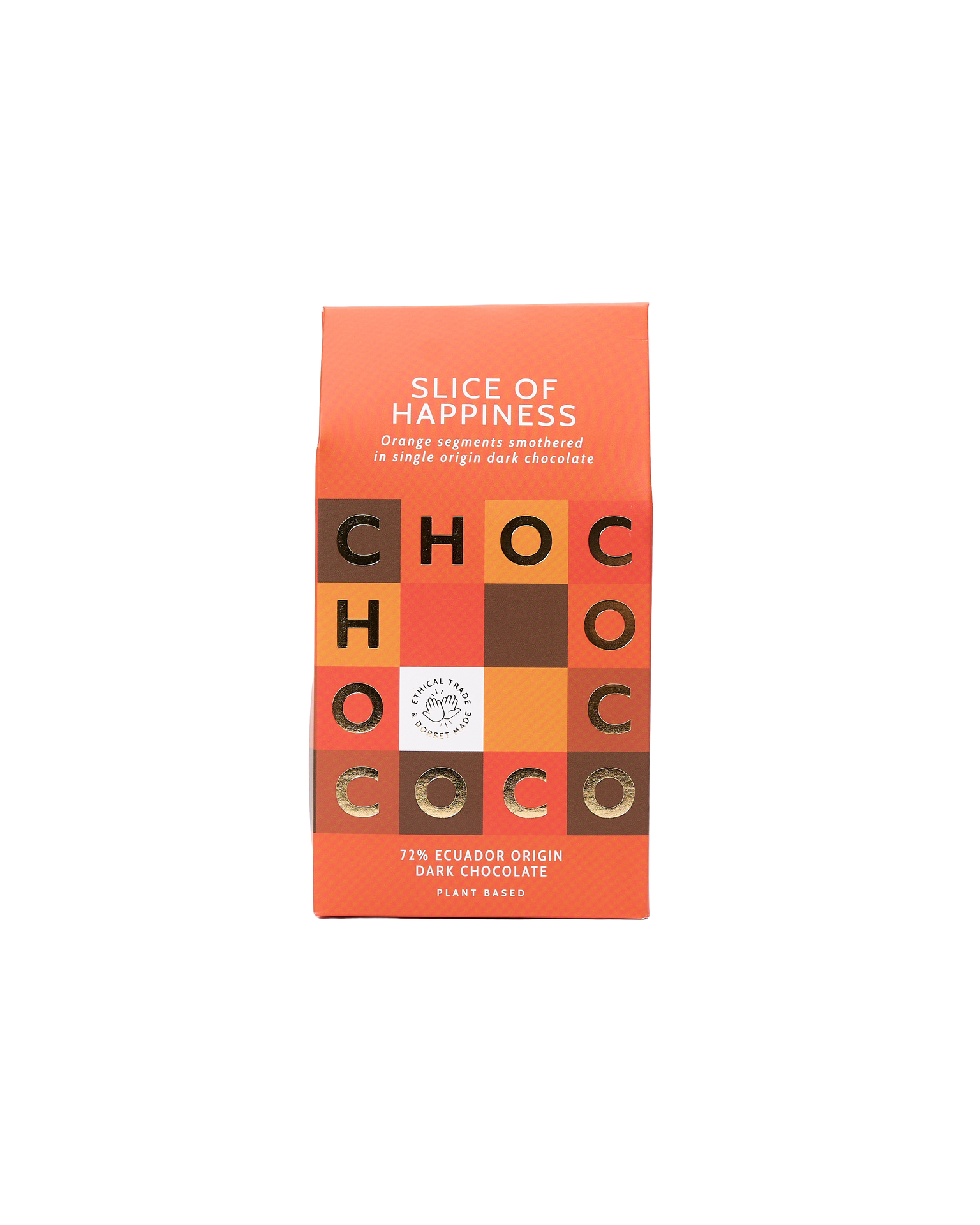 Chococo is a Dorset-based chocolatier that creates artisan chocolates celebrating quality and sustainability. This is a delicious, naturally plant-based treat of candied Spanish orange segments, enrobed in two layers of rich dark chocolate. A sticky, indulgent and sophisticated snack for a sweet treat or a gift for a chocolate lover.