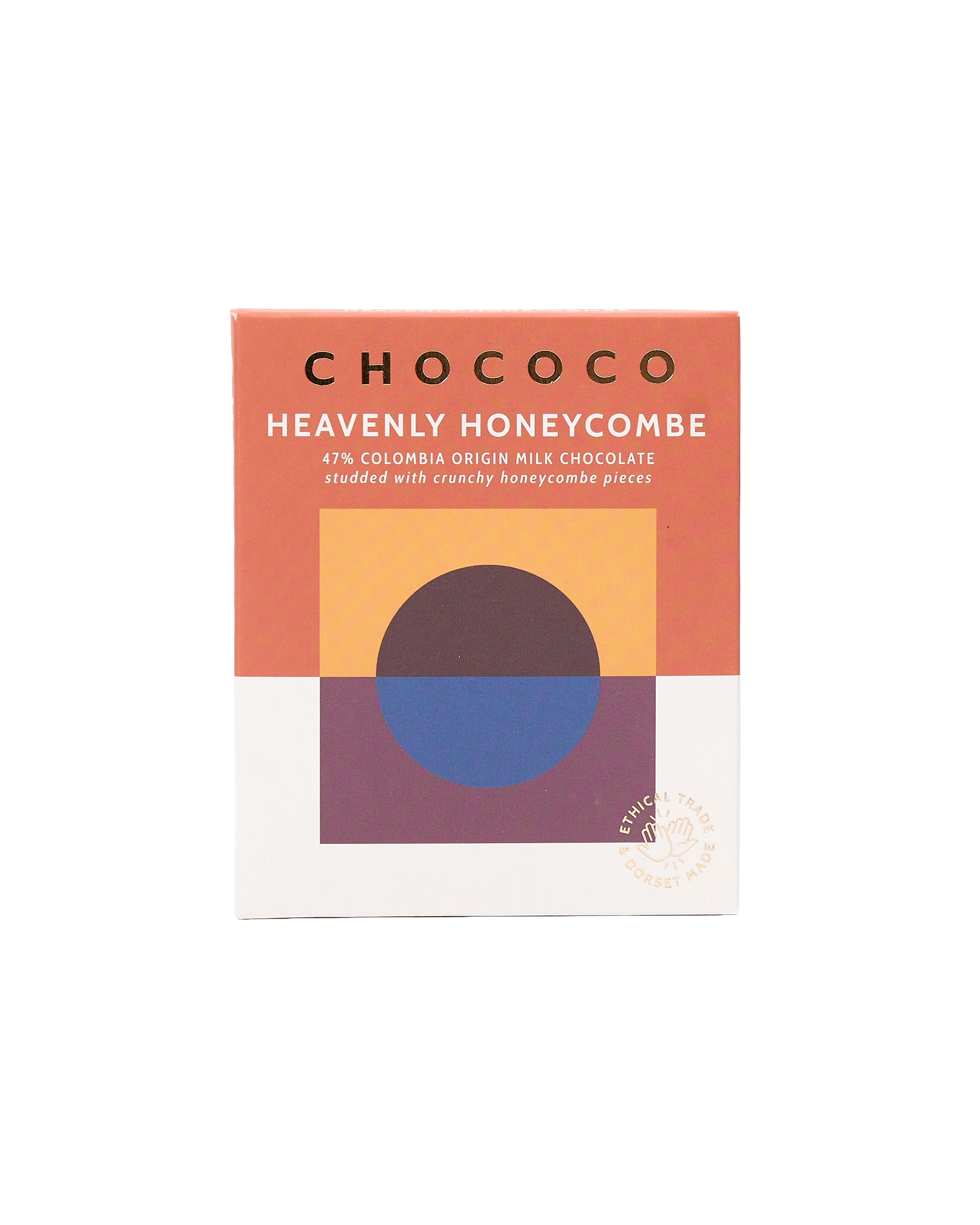 Chococo is a Dorset-based chocolatier that creates artisan chocolates celebrating quality and sustainability. This is a rich milk chocolate bar, blended with crunchy honeycomb pieces and crafted from single-origin Colombian cacao. It has a smooth, velvety texture with a delightful contrast of rich cocoa flavor and sweet, crispy honeycomb bursts. Enjoy it as a sweet snack on its own or break it into pieces to top desserts or mix with ice cream for an indulgent treat.
