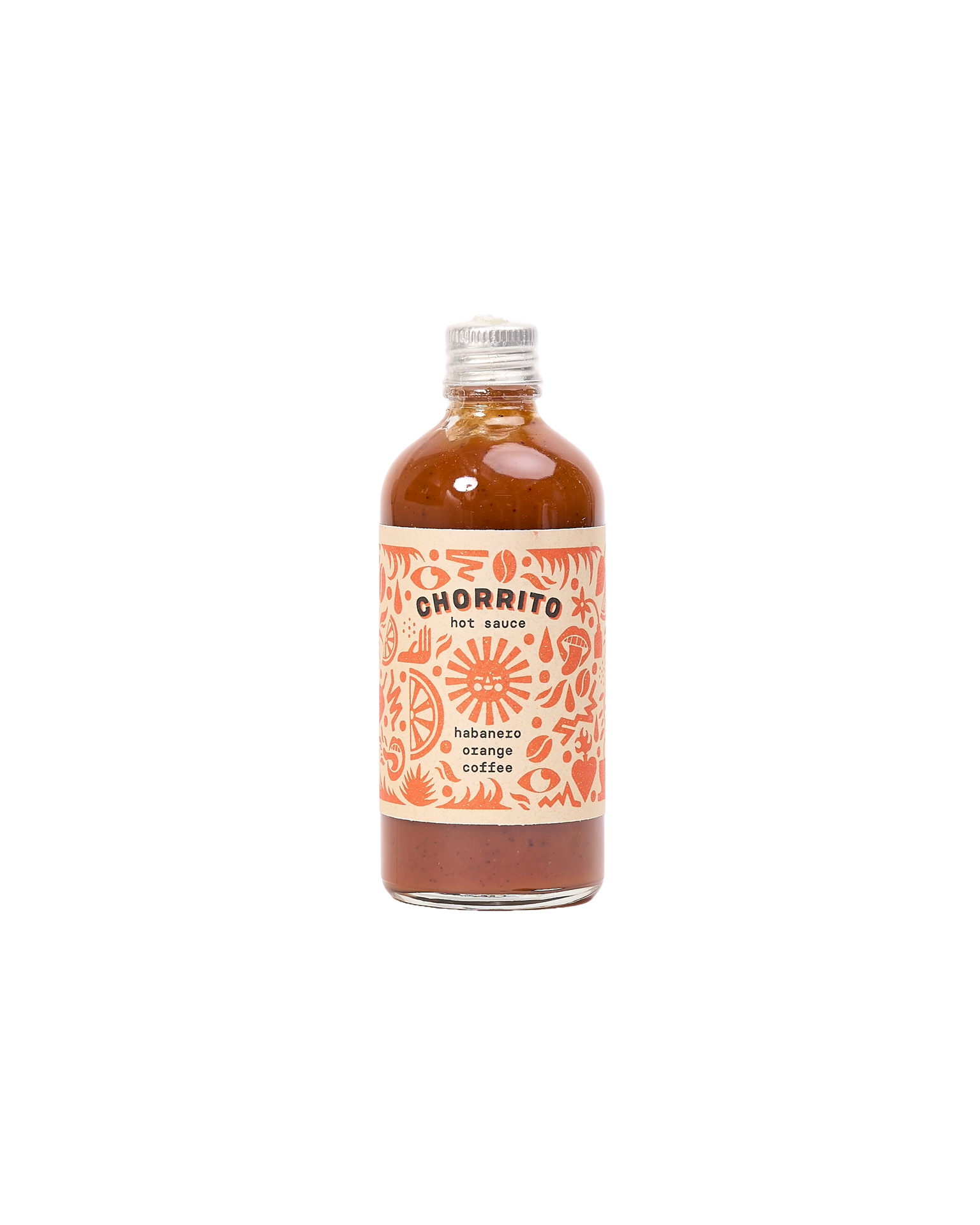 Born in Scotland, Chorrito crafts delicious hot sauces with a focus on community, family, and a love for good food. This Habanero hot sauce blends Spanish oranges and Chorrito's own coffee infused vinegar, roasted garlic, onions, peppers & aged balsamic. Hot and spicy, this sauce is best drizzled over tacos or with seafood.