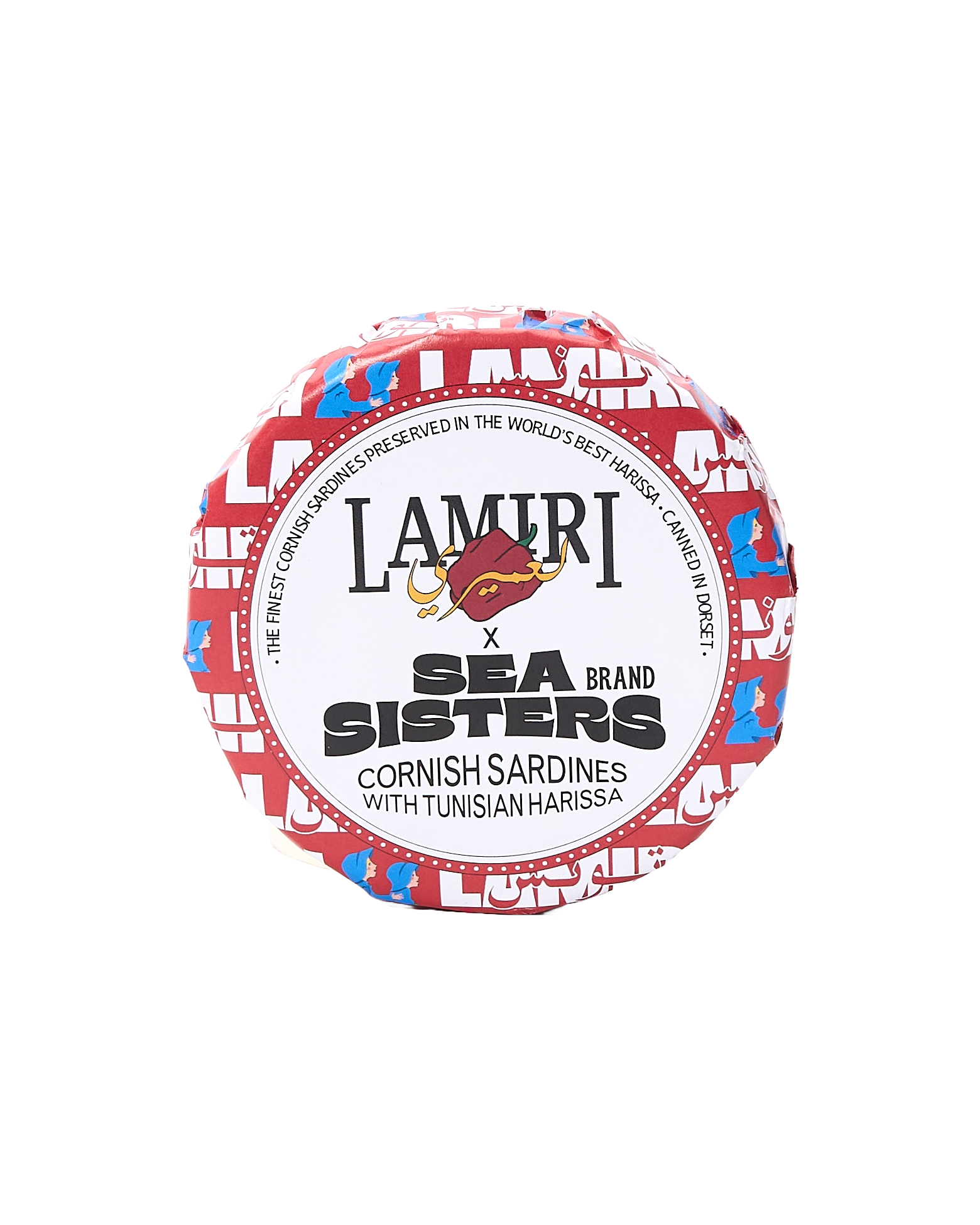 A collab between Sea Sisters – the Dorset-based fish tinning pros – and Lamiri, the Tunisian harissa legend. Together, they’ve made something bold, beautiful and properly unique. Plump Cornish sardines packed by hand, swimming in Lamiri’s iconic harissa. Spicy, smoky, and deeply savoury. Eat straight from the tin, pile on toast, or make a sardine pasta you've never had before.
