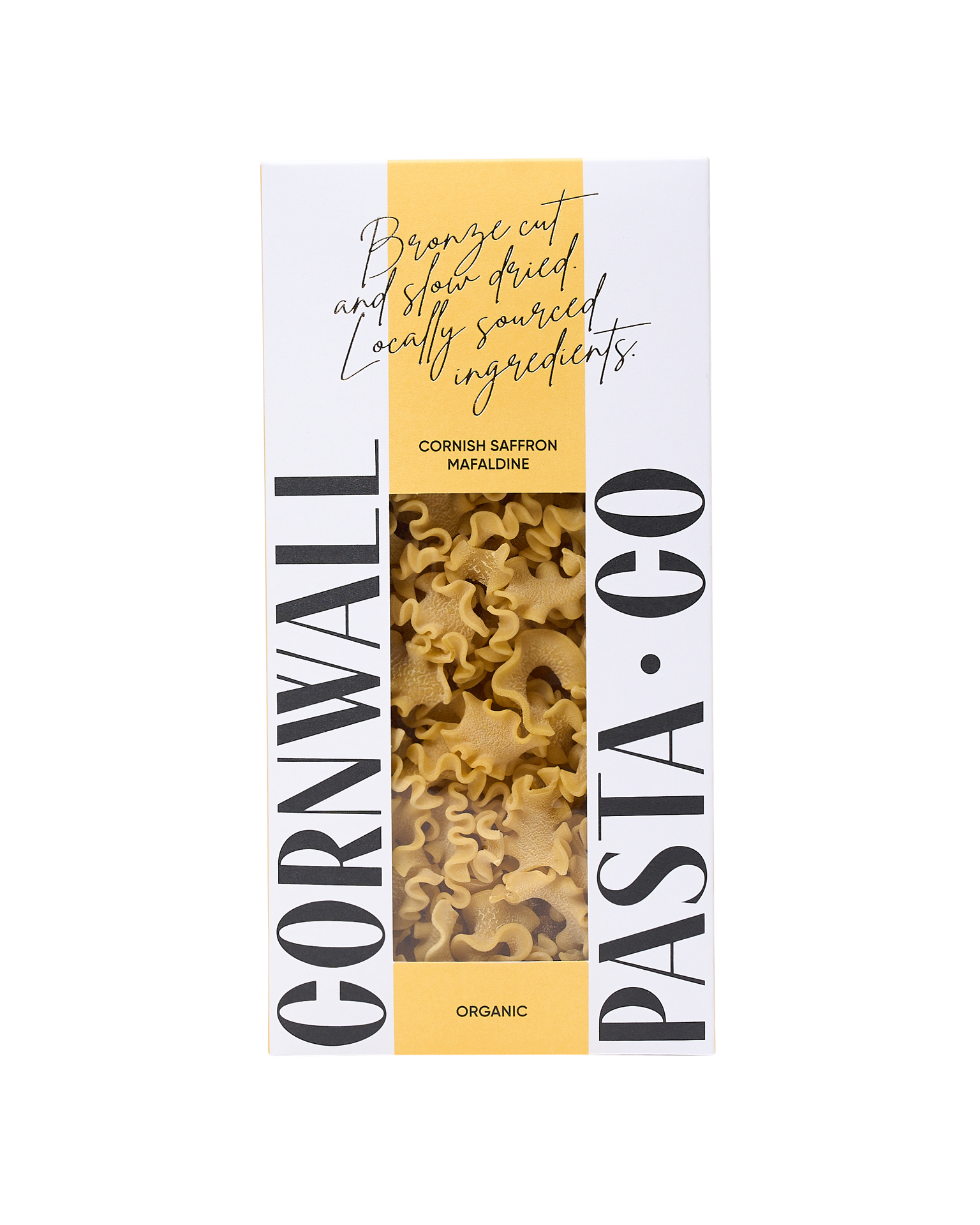 Cornwall Pasta Co is an organic British pasta company dedicated to creating better pasta through sustainable, regenerative farming practices. Their Saffron Mafaldine is an opulent, unique and delicately-perfumed pasta, made with organic saffron grown locally in Cornwall. It offers a subtle, fragrant taste with earthy notes from the saffron. Best served simply with olive oil or butter, allowing the saffron's delicate flavor to shine, or paired with seafood for a luxurious twist. Also a perfect gift for a pasta lover or keen home cook.