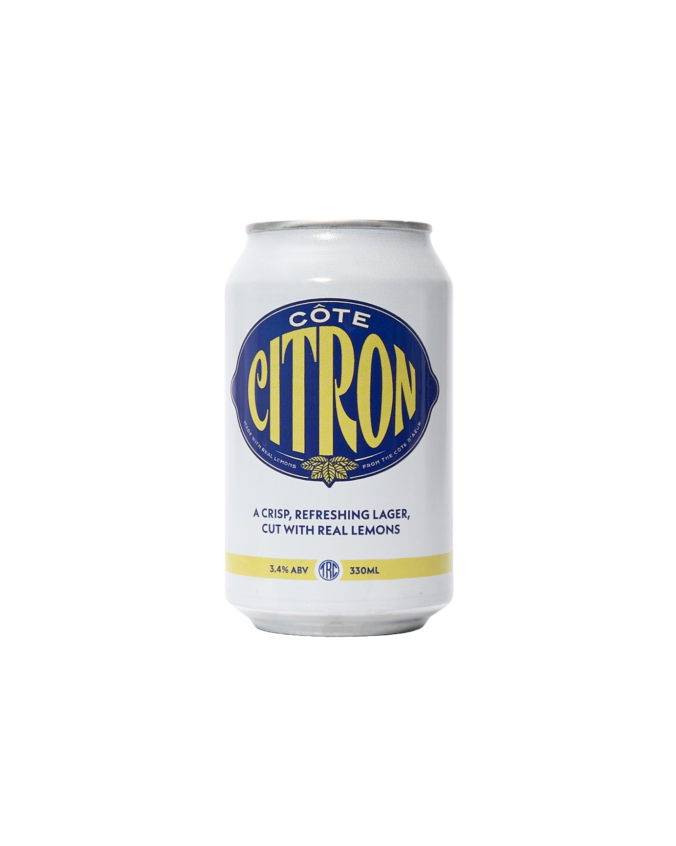 Côte Citron is panaché lager crafted by an independent brewery using lemons from the Côte d'Azur. It's zesty, crisp, and refreshing, perfect as an aperitif or a low‑ABV summer sipper. ABV: 3.4%.