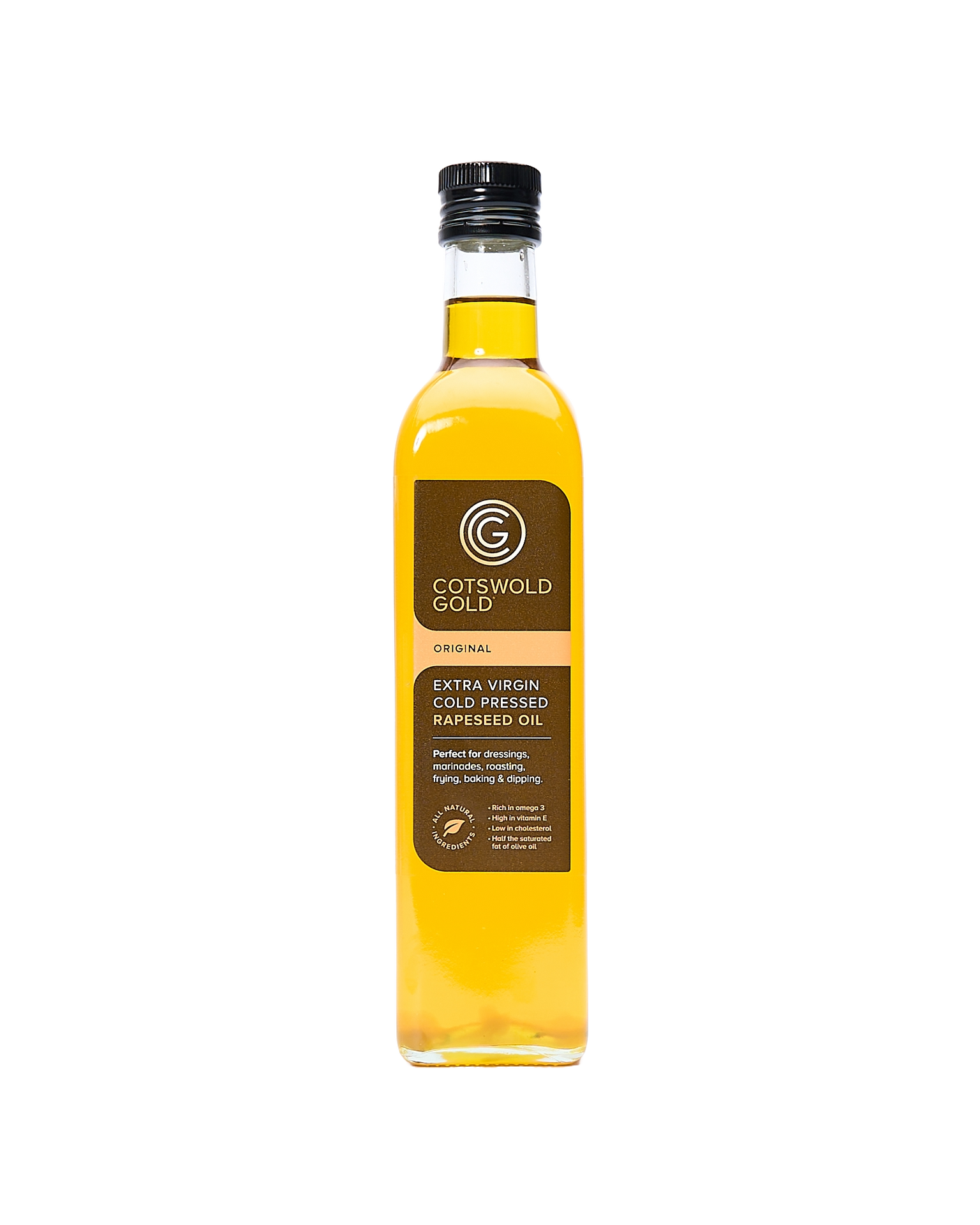 Cotswold Gold's Rapeseed Oil is the perfect kitchen cupboard staple. A premium, extra virgin rapeseed oil made using traditional cold pressing methods. The make this using crops grown on their family farm in the Cotswolds because this ensures that only the finest seeds are pressed. The resulting oil is a beautiful orange colour. With a high smoke point it is perfect for searing meats and it's nutty flavour makes it great drizzled over salad