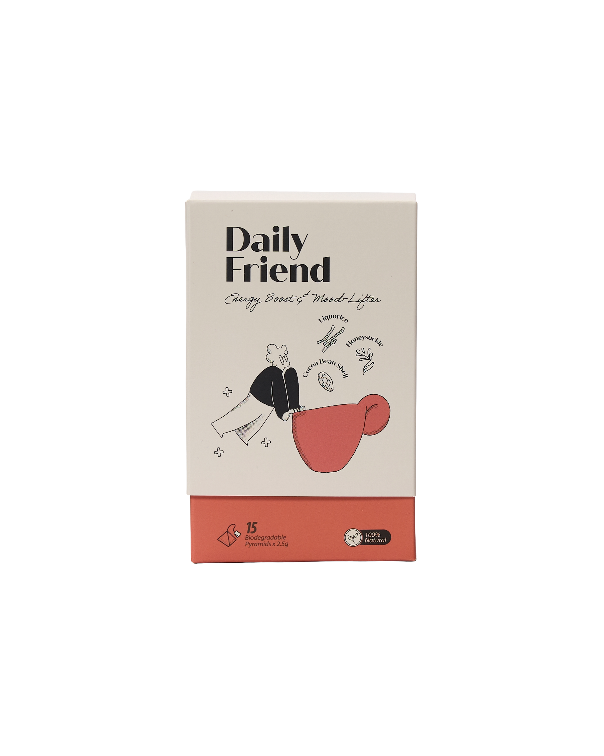 A smooth, mood-lifting blend of black tea, cocoa bean shell, apple, rose petal, liquorice, and soothing honeysuckle—crafted to support mental focus, energy, and wellbeing. Naturally chocolatey and gently sweet, it's a soothing and invigorating daily blend. Includes 15 pyramid tea bags.
