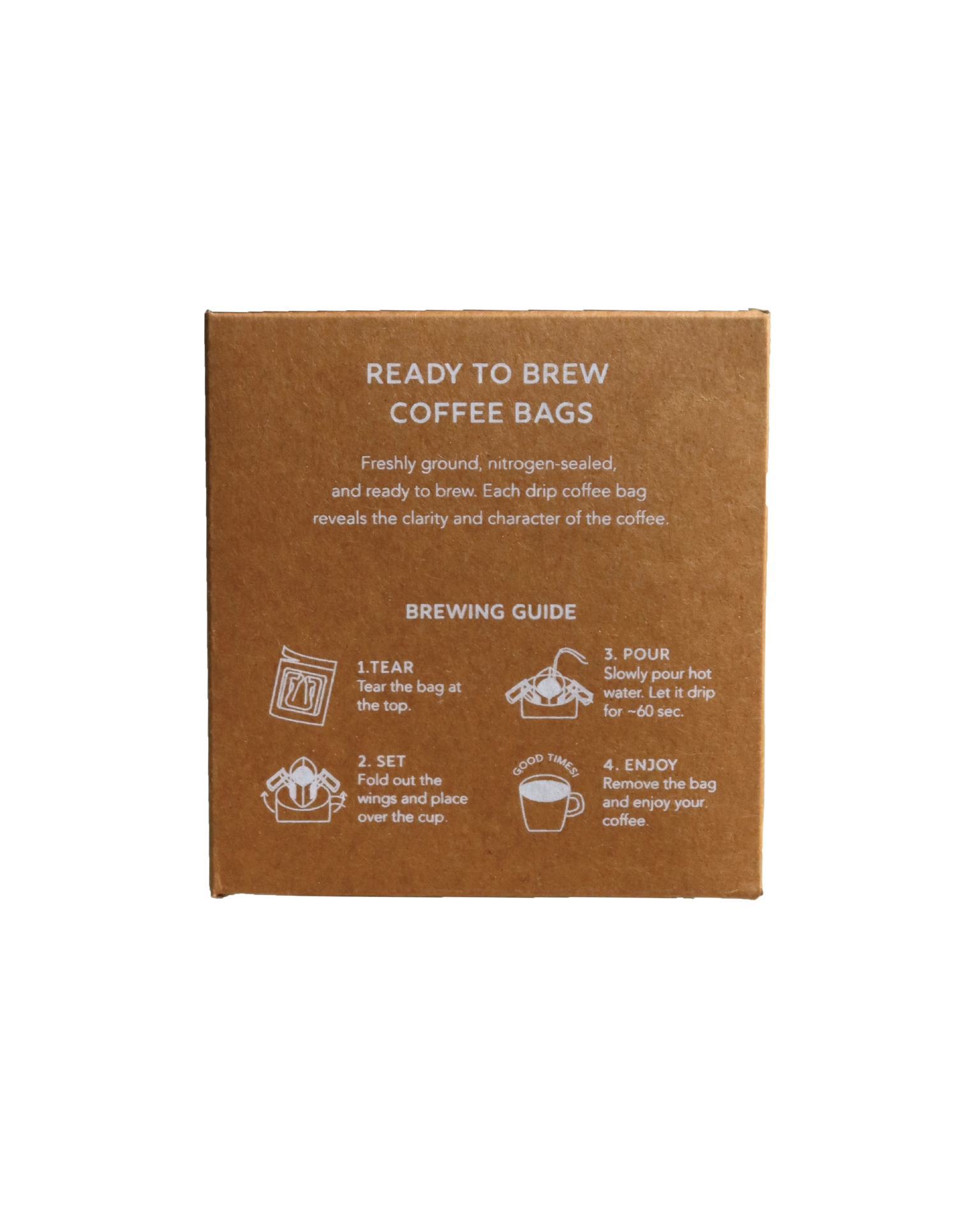 A full-bodied blend of Indonesian Sumatra and Ethiopian Sidamo coffee, delivering rich notes of cocoa, dark chocolate, and brown sugar, balanced by subtle fruity sweetness. Perfect for your morning brews, adventures and anything in between. Each box contains 8 drip bags of pre-ground coffee, ready to use with or without equipment.