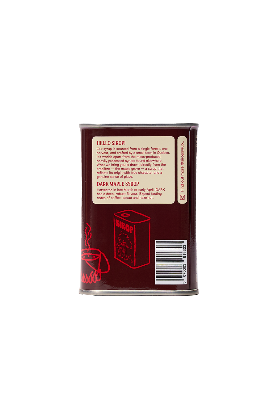 Harvested between late March to early April, Sirop’s Dark Maple Syrup delivers a deep, robust flavour with nuanced notes of coffee, cacao, and hazelnut. This rich and complex syrup enhances everything from cocktails to baked goods, perfect for those looking to bring a sophisticated, refined touch to their kitchen creations.