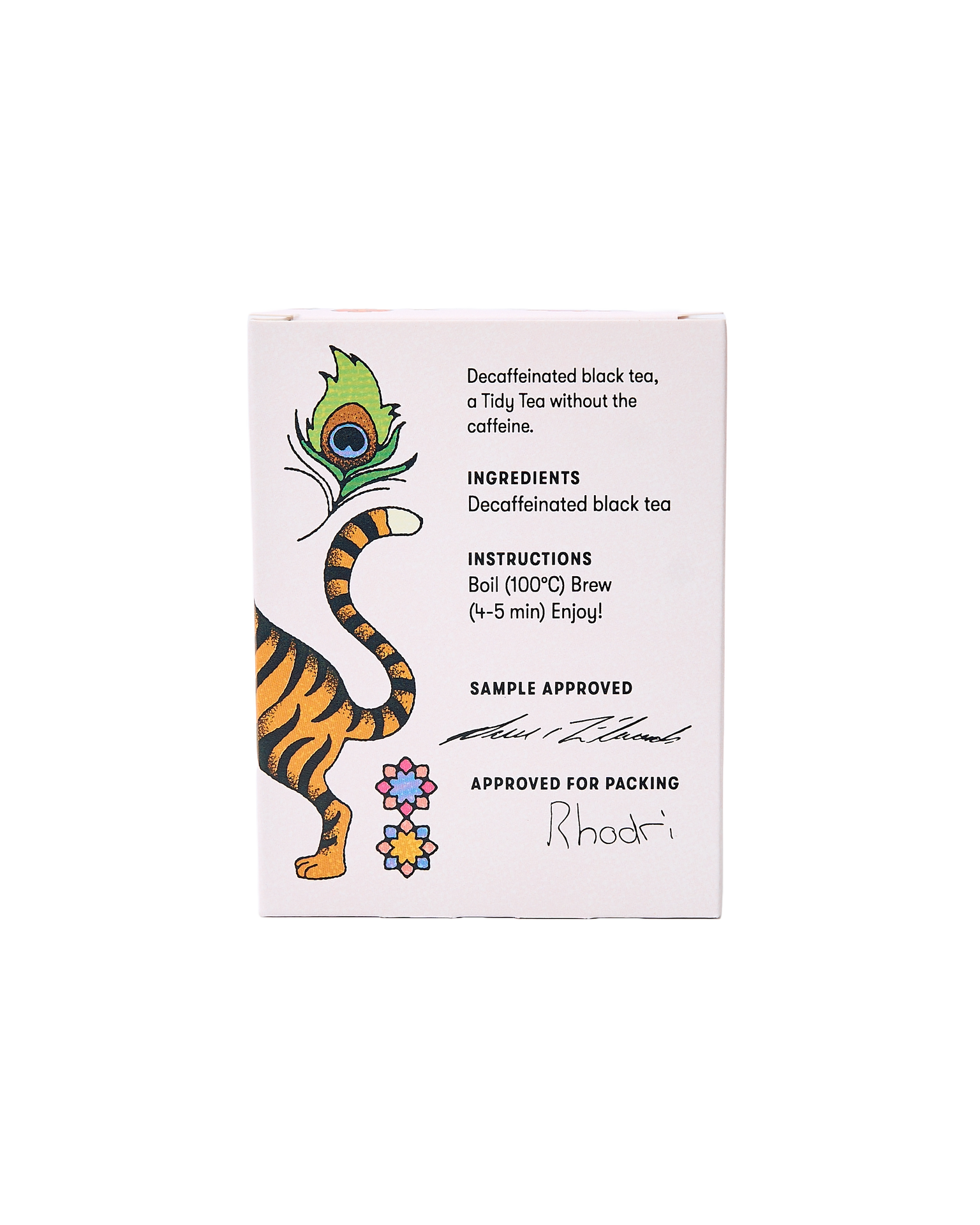 Tidy Tea's Delhi Decaf is a smooth black tea with the caffeine removed—just as you'd expect. Includes 15 plastic-free pyramid bags, all 100% compostable.