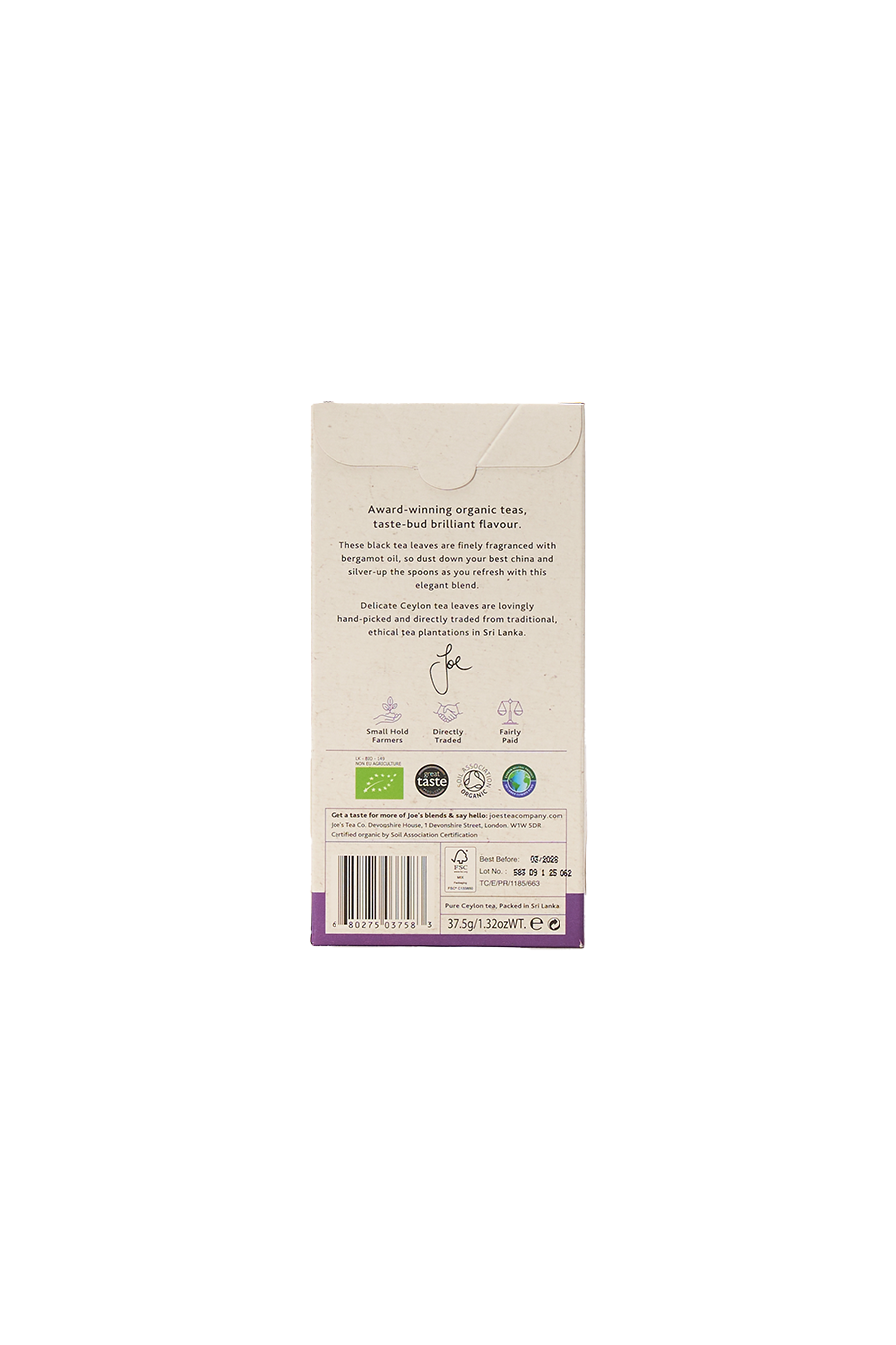 Joe’s Tea crafts a refreshing, organic black tea blend fragranced with uplifting bergamot oil. The delicate Ceylon leaves are hand-picked and directly traded from traditional, ethical plantations in Sri Lanka, creating a sophisticated, refined cup.