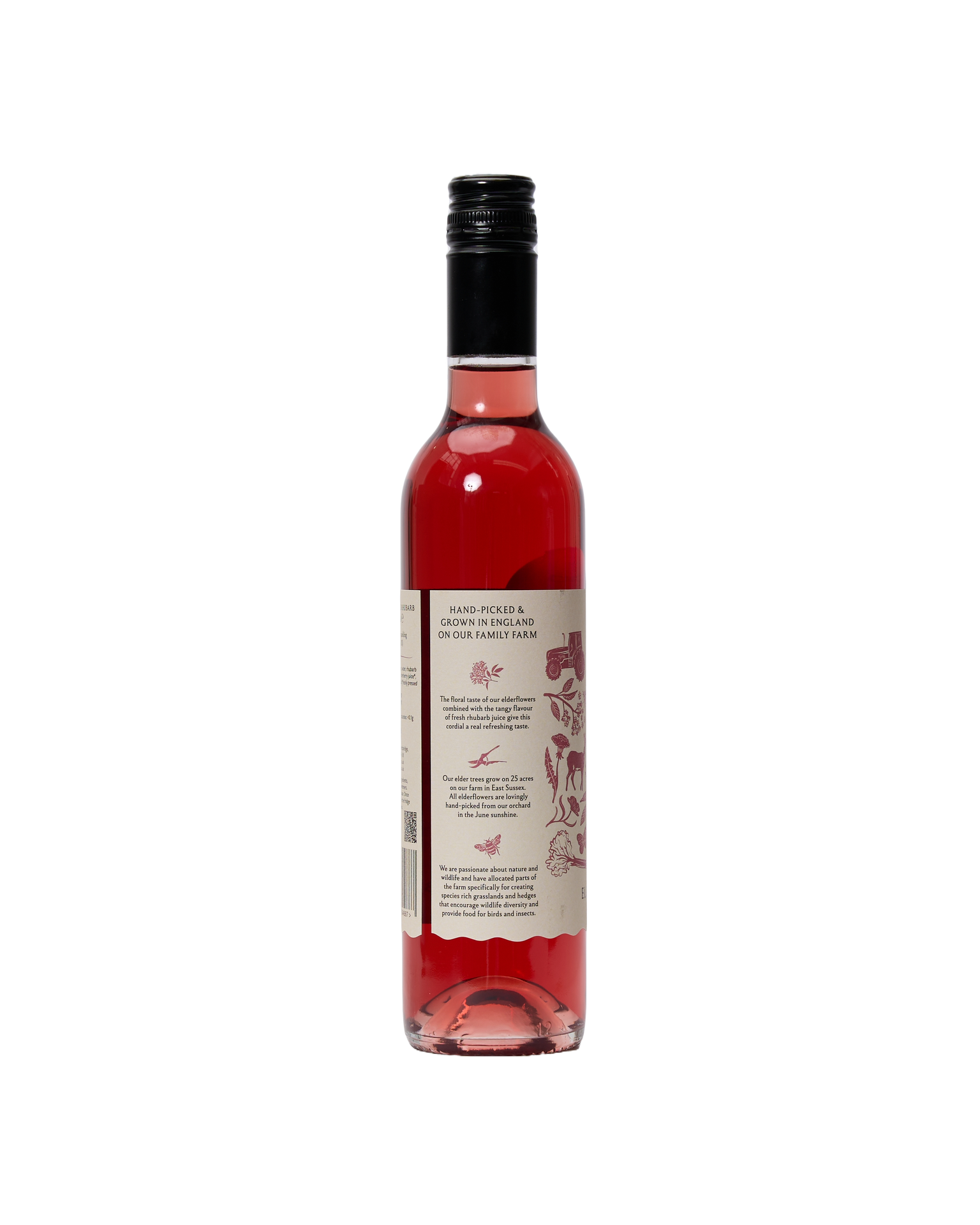 A vibrant Elderflower & Rhubarb Cordial, handcrafted at Bush Barn Farm in East Sussex. The floral elegance of hand-picked elderflowers combined with the tang of real rhubarb juice creates a refreshing taste, free from artificial ingredients, preservatives and sweeteners. Dilute to taste with still or sparkling water.