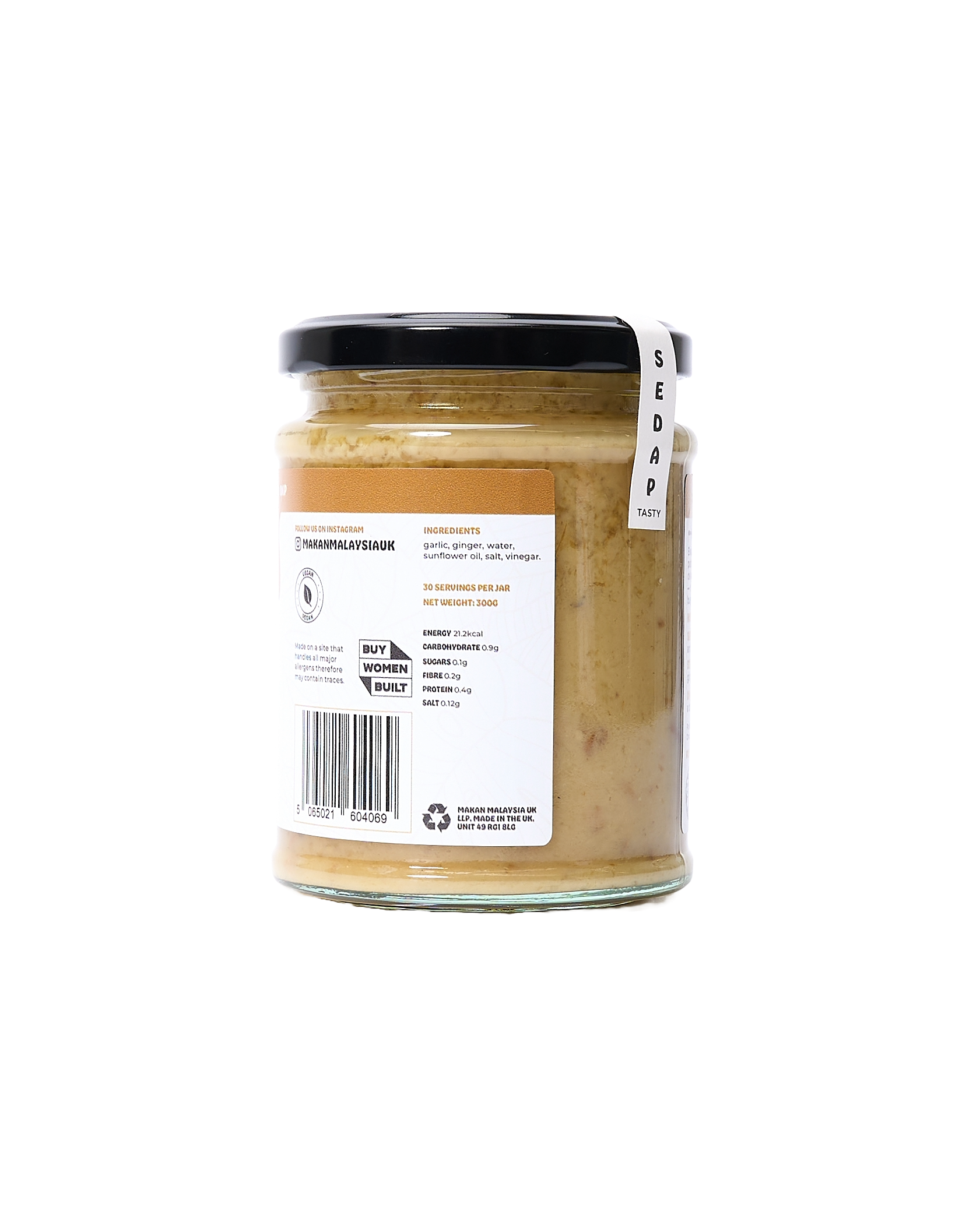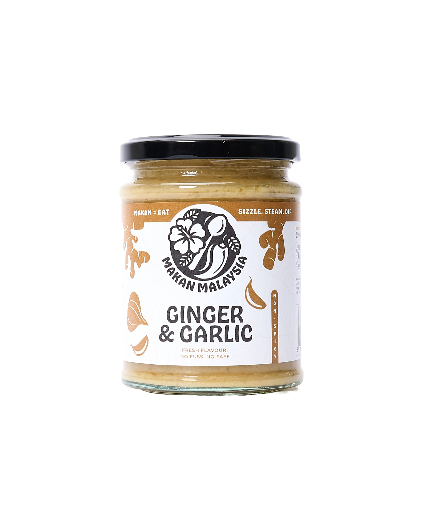 MAKAN MALAYSIA, GINGER & GARLIC: A smooth, ready-to-use paste made with fresh ginger and garlic. A staple in South East Asian cooking, it adds bold, savoury depth to stir-fries, curry bases and noodle soups. You can also add a spoonful to your rice cooker to infuse steamed rice with aromatic flavour.