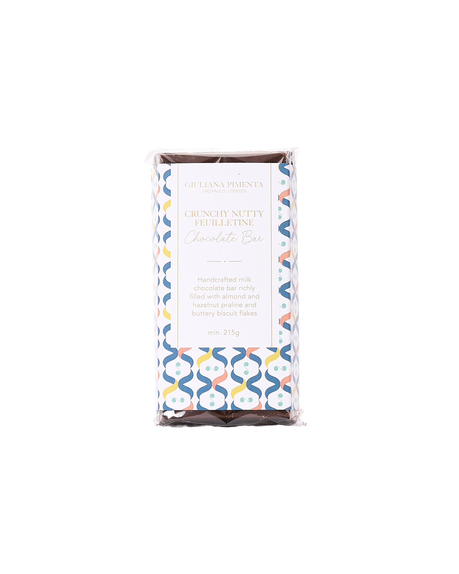 Giuliana Pimenta focuses on creating multi-sensory chocolate experiences using the finest ingredients and traditional techniques. Smooth and nutty, the Crunchy Nutty Feuillettine Chocolate Bar features 41% milk chocolate. With a chocolate ganache filling enriched with almonds and hazelnuts praline and a crunchy touch of caramelised biscuit flakes, its perfect enjoyed on its own or with a coffee.