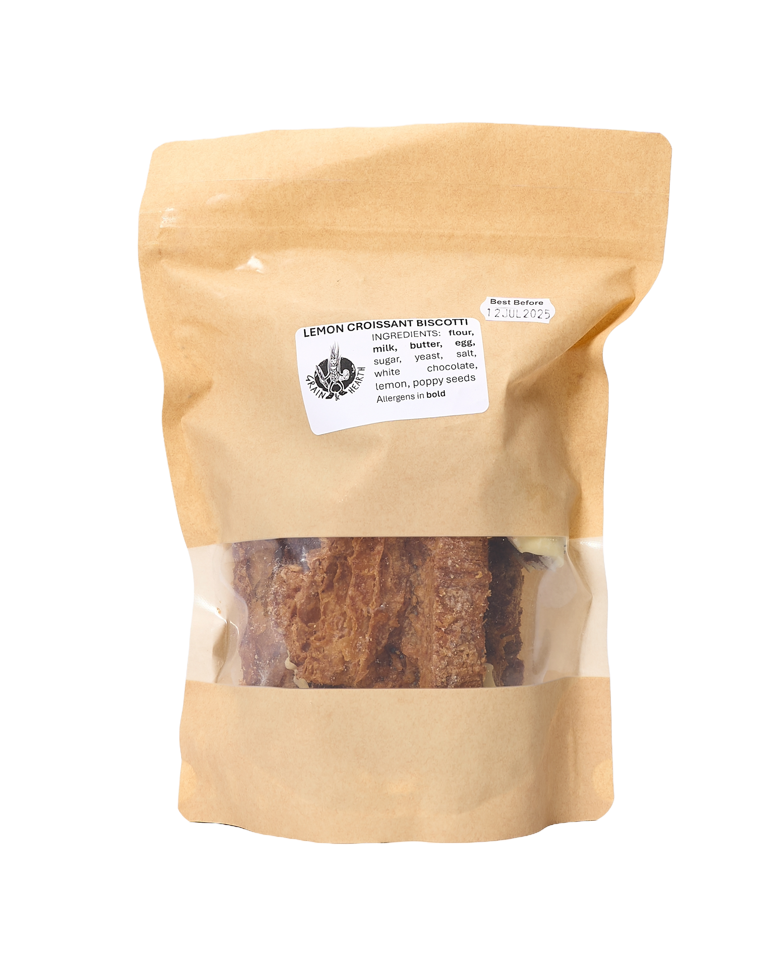 Grain and Hearth’s White Chocolate, Lemon, and Poppy Croissant Biscotti is a seasonal take on their signature croissant-based classic. Made from buttery croissant slices soaked in a sweet lemon-infused cream, they’re slow-baked until golden and crisp. Each piece is then dipped in white chocolate and finished with a scattering of poppy seeds for added crunch. Perfect with a cup of Earl Grey tea.