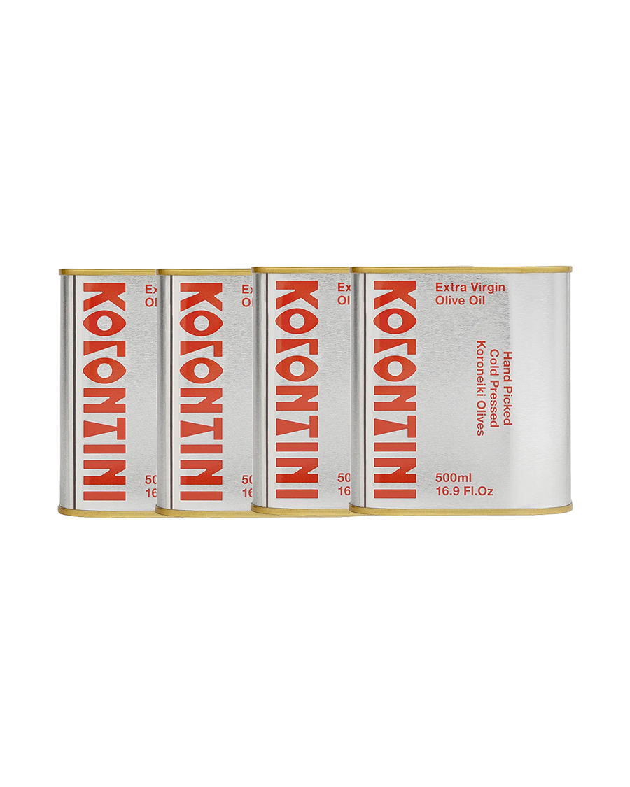 Made using tiny koroneiki olives grown on sacred trees in Crete, Greece. These native olives are hand picked by local families who have been working with olive oil for generations. The koroneiki olive variety is tiny in size but world-famous for their powers. The smaller the olive the stronger the flavour and health potency. They are crushed at the nearby mill and transformed into golden green oil. Korontini is extra virgin olive oil as it has always been.