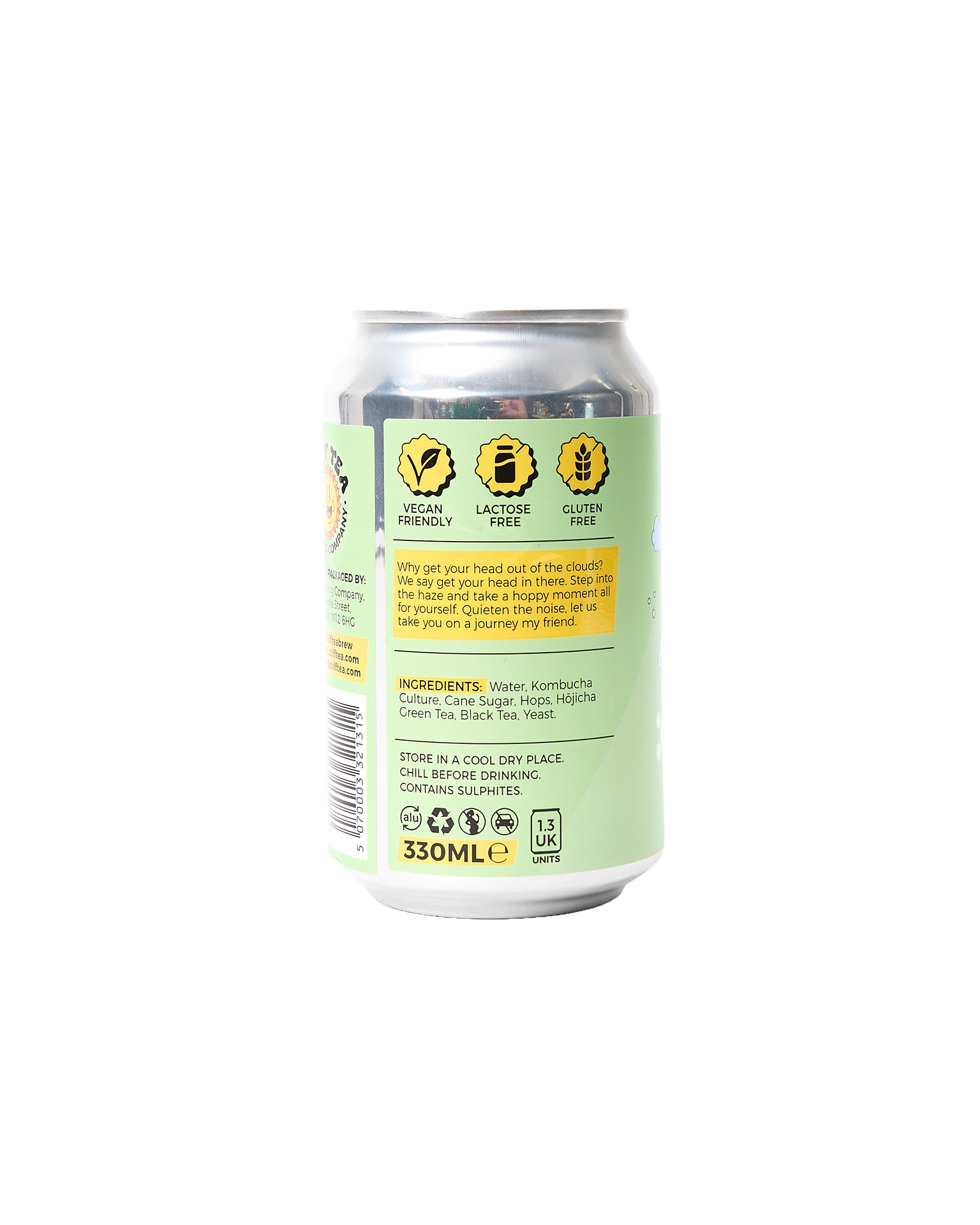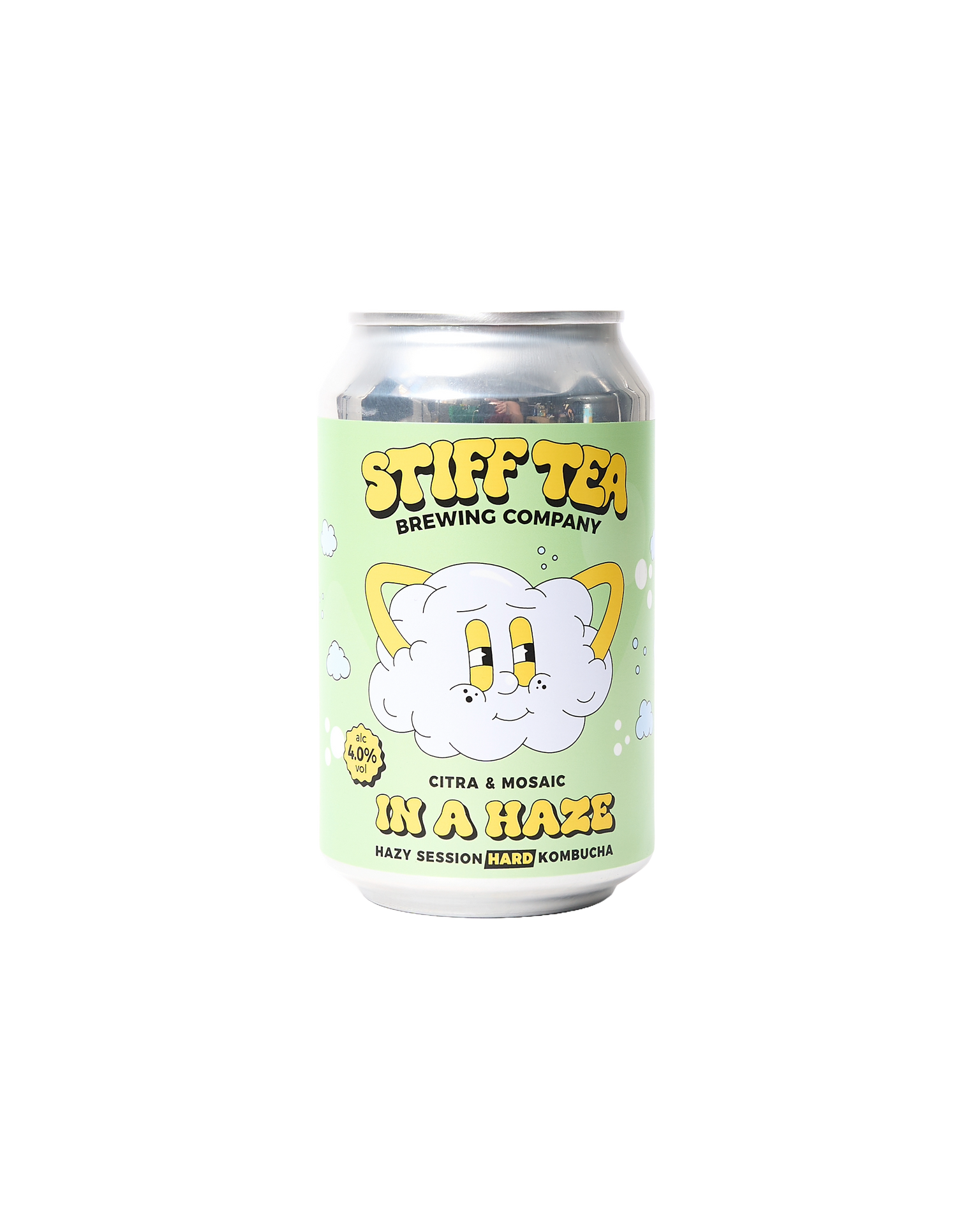 In A Haze is Stiff Tea’s 4% hazy session hard kombucha — a bold hybrid of pale ale and fermented tea, brewed with Mosaic and Citra hops over their signature house tea blend. Light, citrusy, and softly sparkling, with grapefruit zest and tropical fruit vibes, it gives hops a whole new groove. A cloudy escape in a can. ABV: 4% ABV: 4.0%