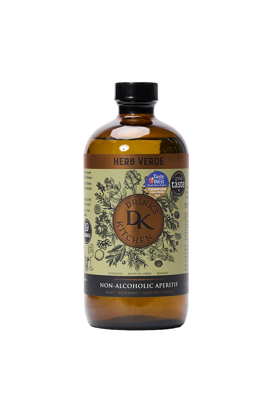 Fresh mint, rosemary, gentian, and thyme combine in this fresh, herbal botanical non-alcoholic aperitif. Serve simply: 1:5 with sparkling water or soda for a crisp, refreshing sip. Brilliant with elderflower tonic, mixed into a non-alcoholic Mojito, or poured as a vibrant Garden Spritz packed with fruit and herbs.