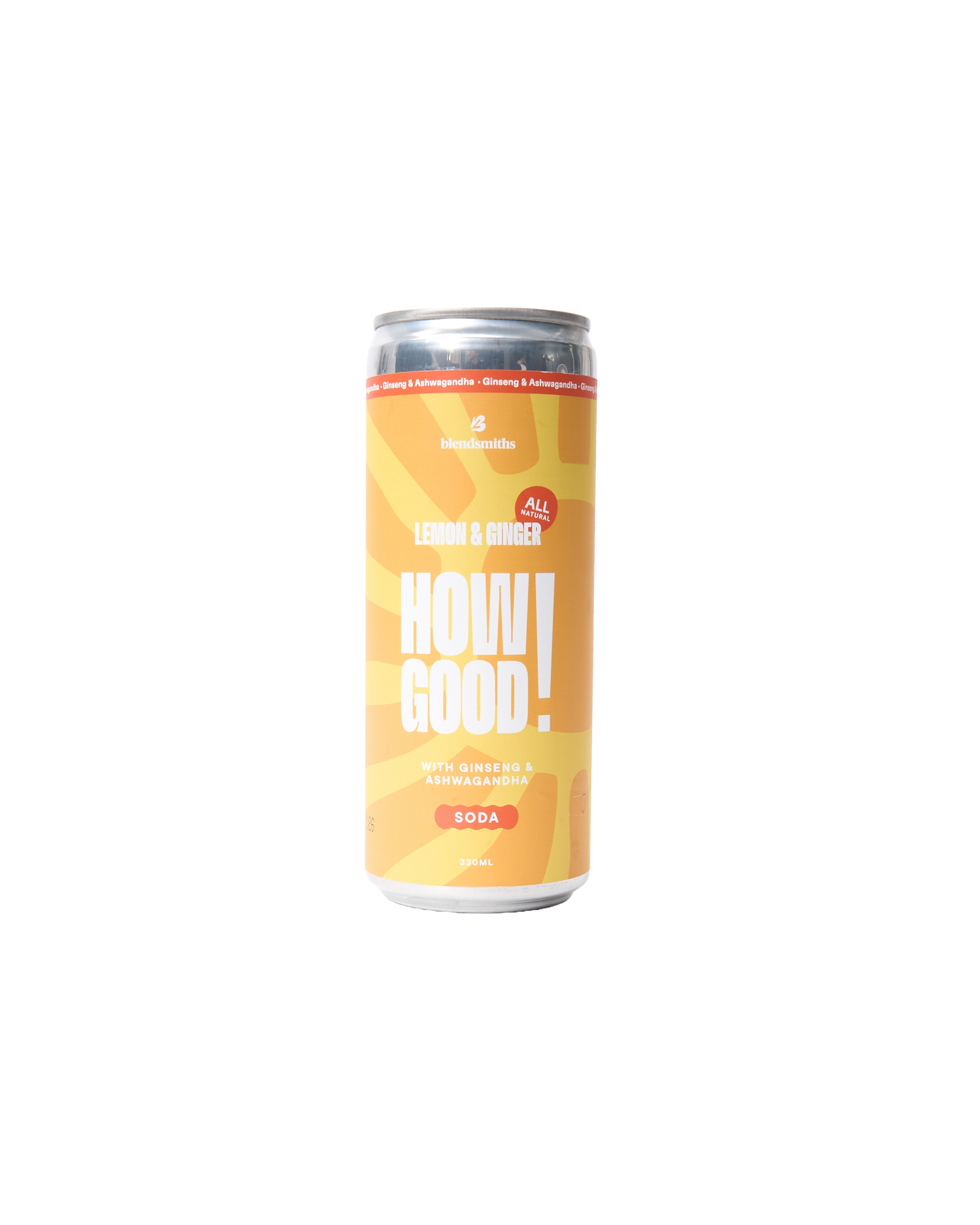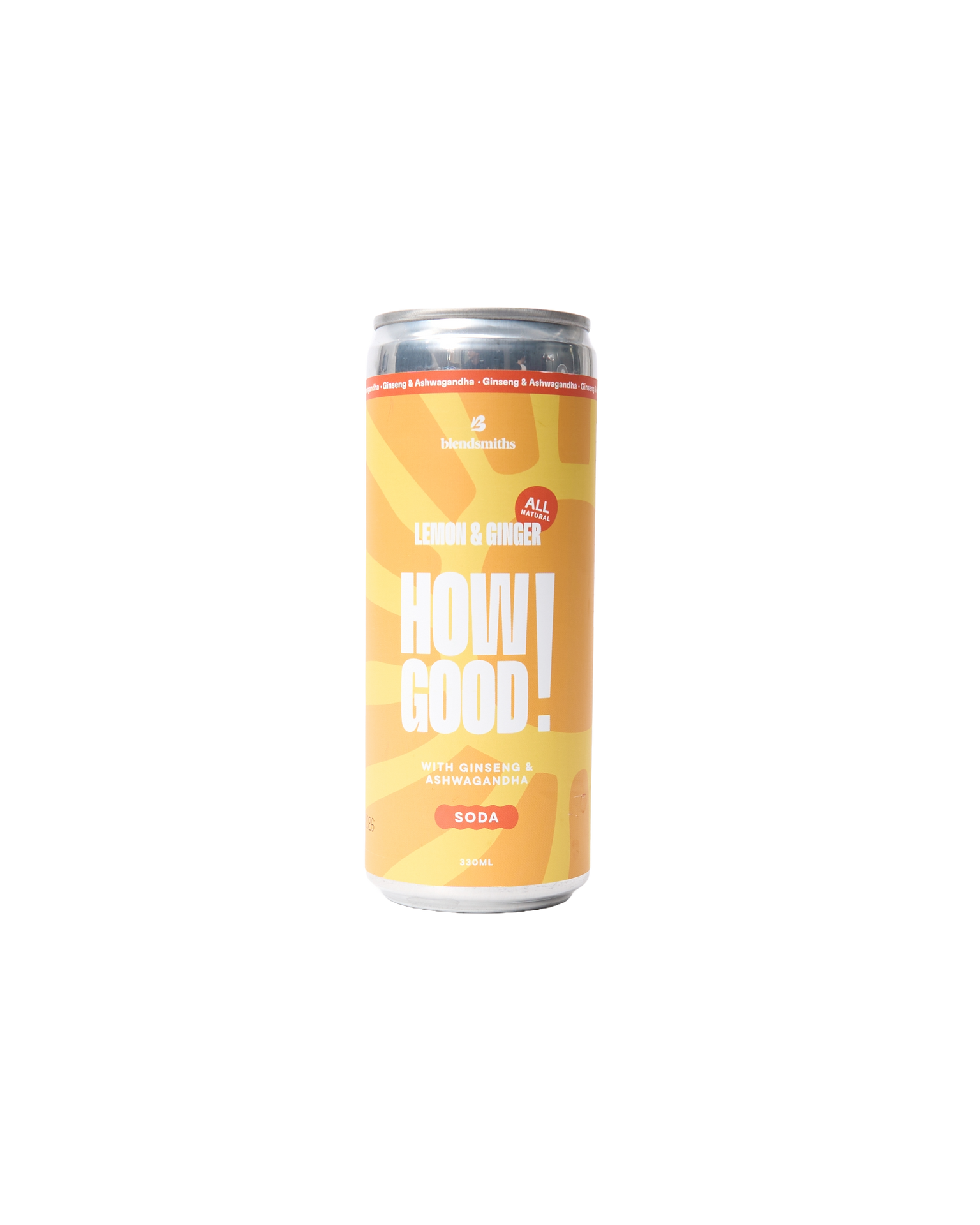 Zesty lemon and a flicker of fiery ginger come together in Blendsmiths’ Lemon & Ginger Ashwagandha Soda—a vibrant, sparkling lift with a grounding twist. Infused with ginseng and ashwagandha, and naturally sweetened with honey, it’s a bright, feel-good soda designed to sharpen focus and awaken the senses.