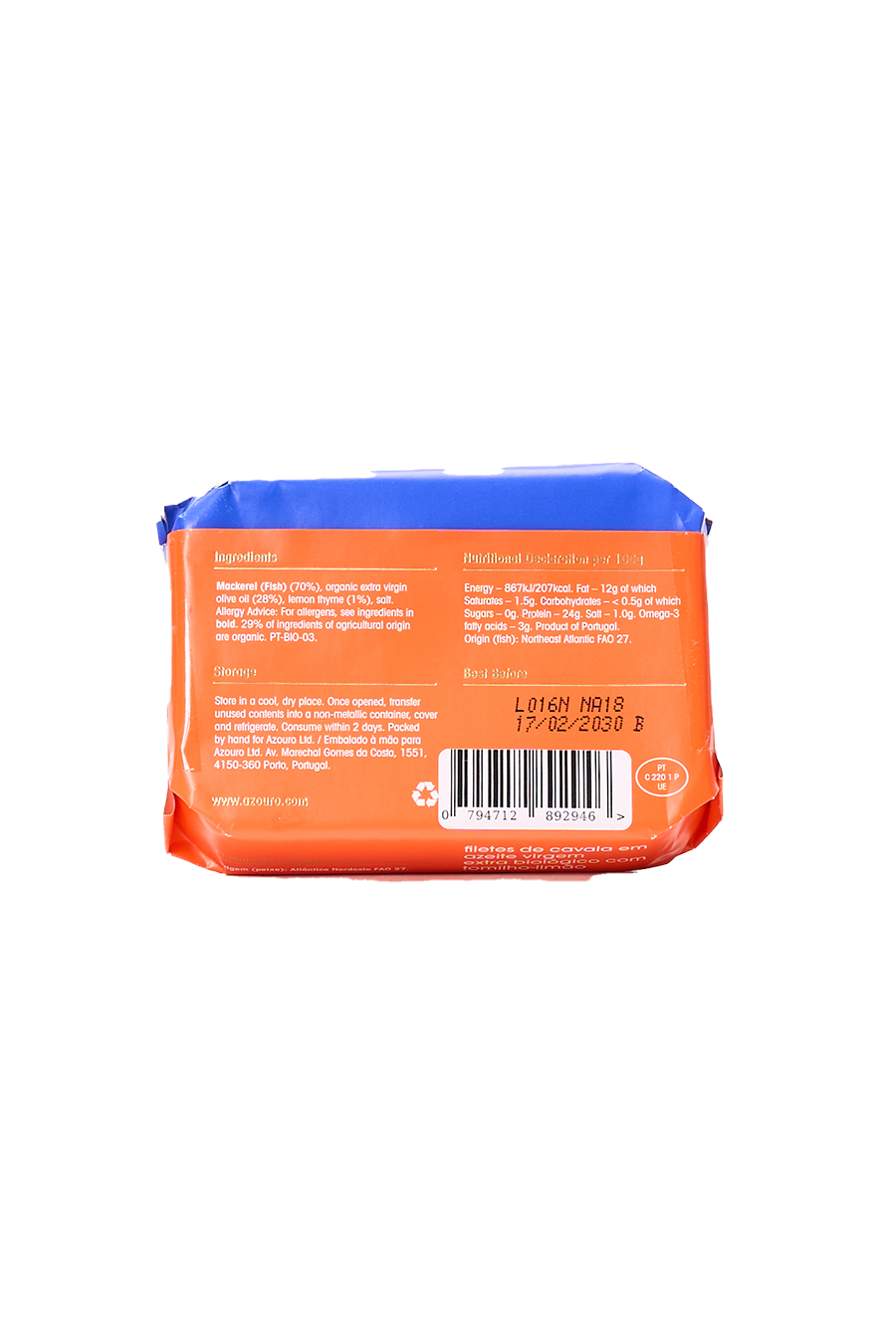 Sustainably caught premium mackerel, hand-prepared in Northern Portugal and preserved in organic extra virgin olive oil with a hint of lemon thyme. Skinless and boneless, delicate and light in flavour. Perfect to enjoy straight from the tin, with pasta, in salads, on toast, or as tapas. High in protein and rich in Omega-3 for heart and brain health.