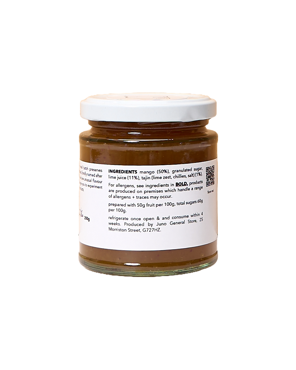 A bright, summery jam made with ripe mango, fresh lime and a hit of Tajín spice. Sweet, tangy and lightly spiced — great on croissants, with yoghurt and granola, or spooned over ice cream.