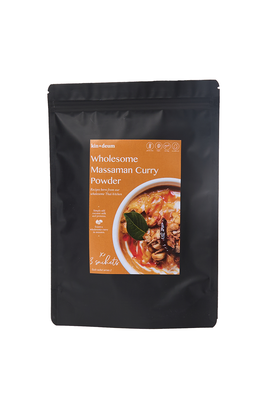 kin deum's Wholesome Thai Massaman Curry Powder is crafted from sun-dried, natural spices to capture the gentle warmth and aromatic depth of their signature dish. This pack includes three portions, so you can recreate their restaurant-quality Massaman curry at home again and again. 100% natural, vegan, and free from MSG or preservatives, simply add water and coconut milk for a rich, comforting curry in minutes.