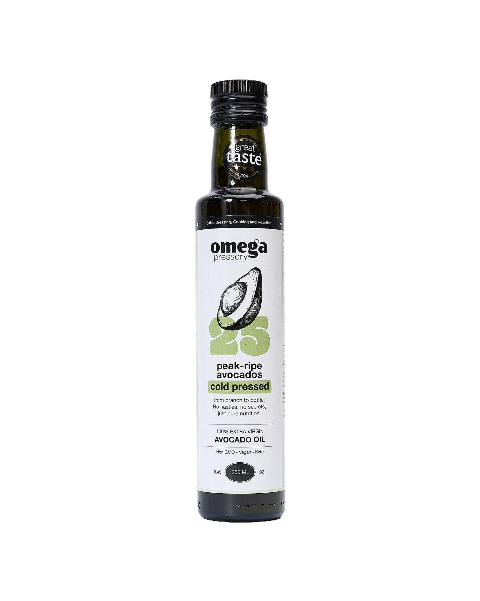 Omega Pressery have partnered with farmers to transform 'wonky' harvests into high-quality, Omega bursting, Extra virgin, and Cold-pressed oils. Their extra virgin avocado oil is crafted from 25 peak ripe avocados using a zero-heat mechanical press and double filtration process. This results in an emerald green oil with the aroma and flavour of a perfectly ripe avocado.