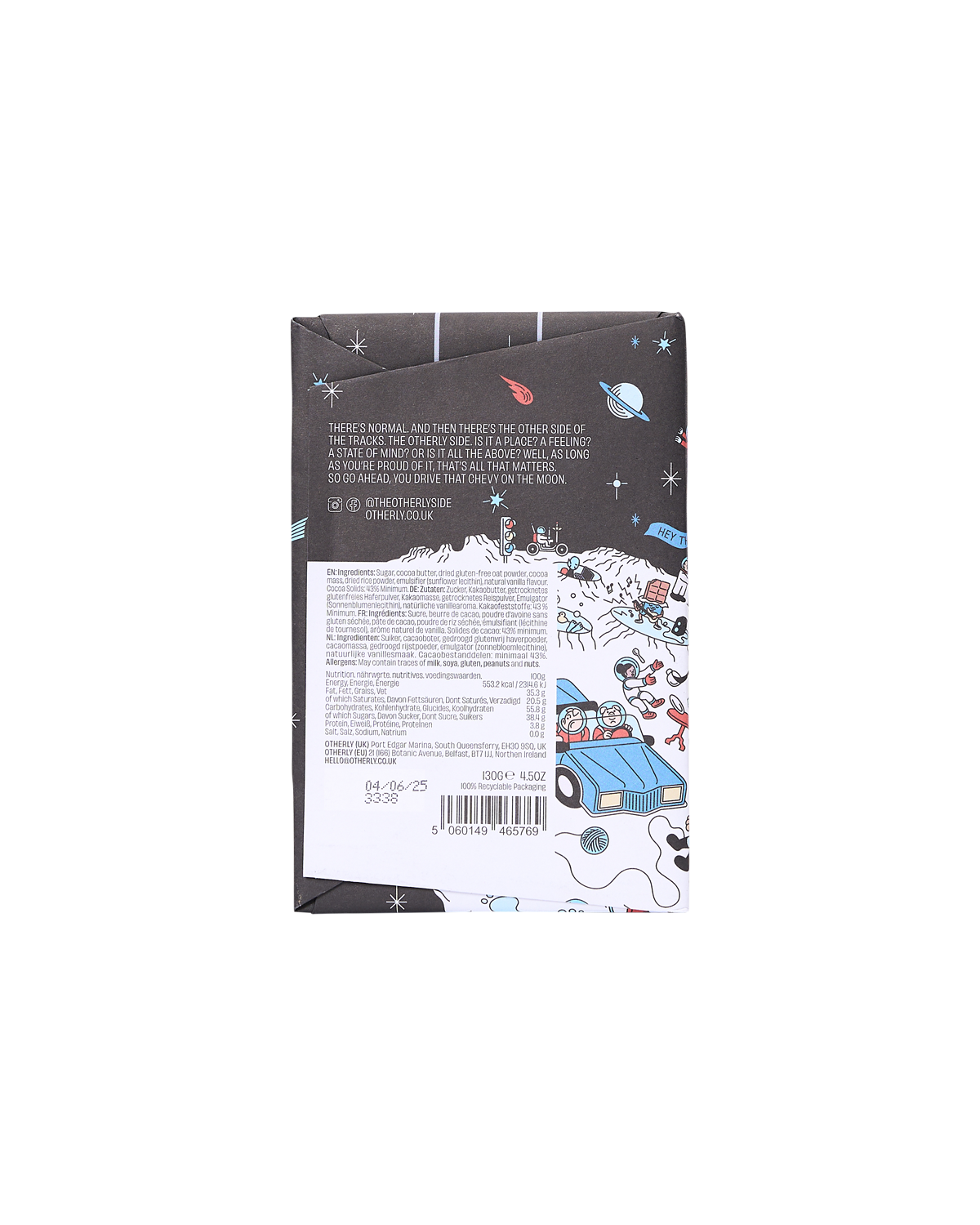 OTHERLY specialise in plant-based chocolate that’s flavourful and moreish. Using gluten-free oat powder, this original plain milk bar has a cacao content of 43% with fine flavour cocoa beans from Colombia. It has an indulgently creamy finish with a sweet biscuity taste. Enjoy as part of a dessert plate with nuts and fruit.
