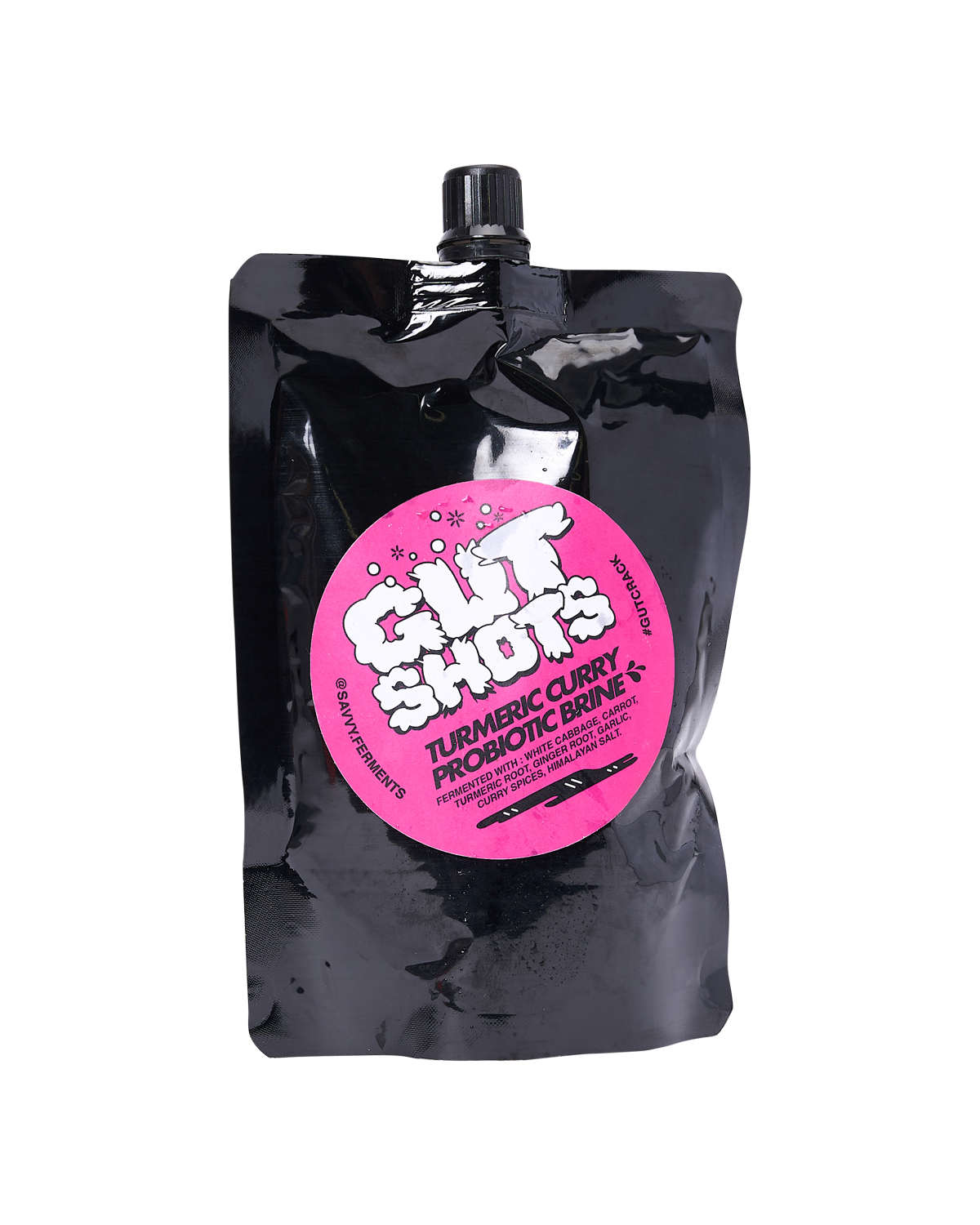White cabbage, carrot, turmeric root, ginger root, garlic, curry spices, and Himalayan salt.