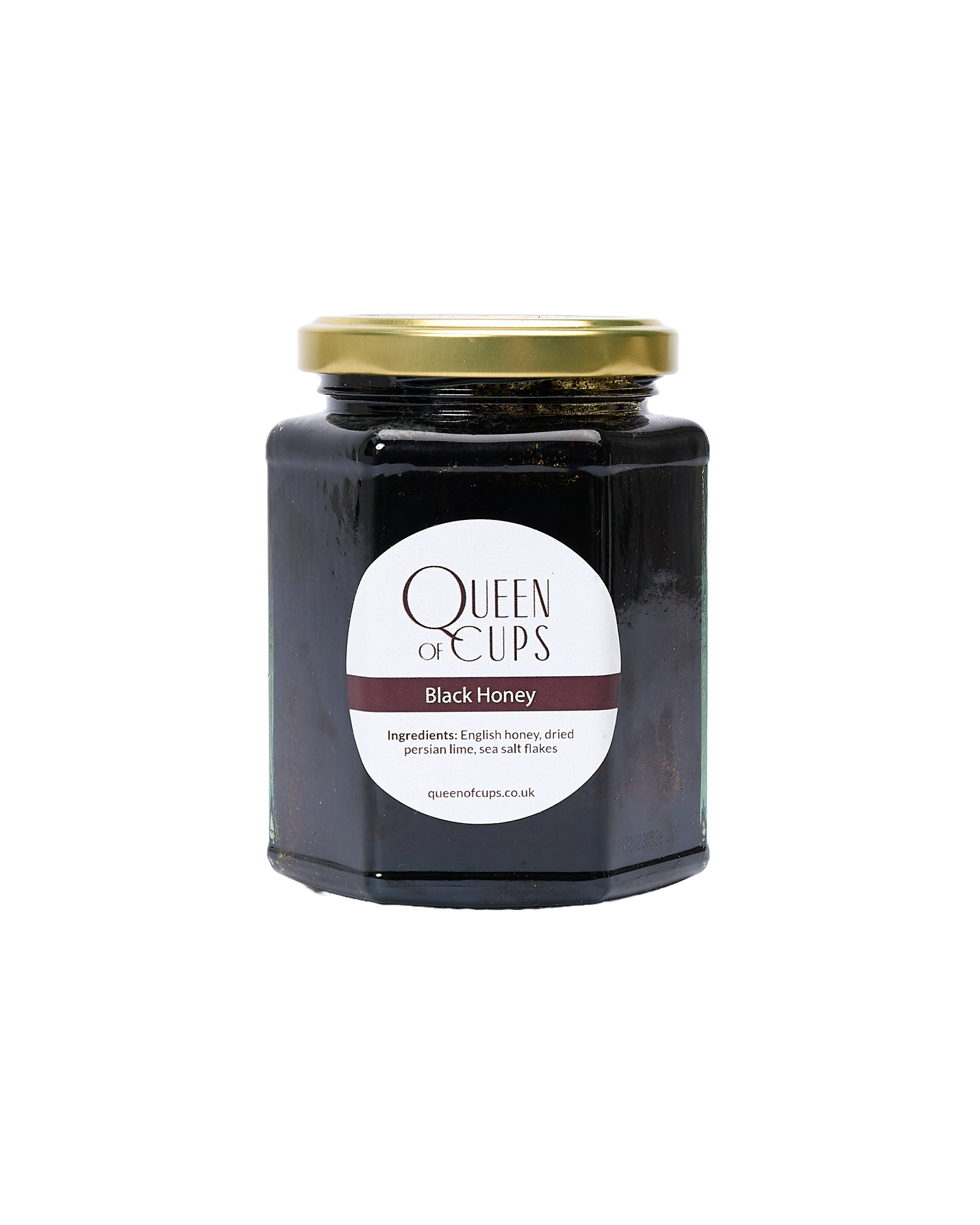 Queen of Cups’ Black Honey is a luxurious concoction of honey infused with black Persian limes and a delicate pinch of sea salt. What sets it apart is its dark, sultry hue and an enchanting balance of floral sweetness and tangy sharpness, crafted from the finest Persian limes for an unrivalled depth of flavour. It’s divine when draped over nabulsi cheese—a Middle Eastern delight akin to halloumi—but equally spectacular in salad dressings, atop creamy goat cheese, or decadently drizzled over vanilla (or, dare we say, tonka) ice cream.