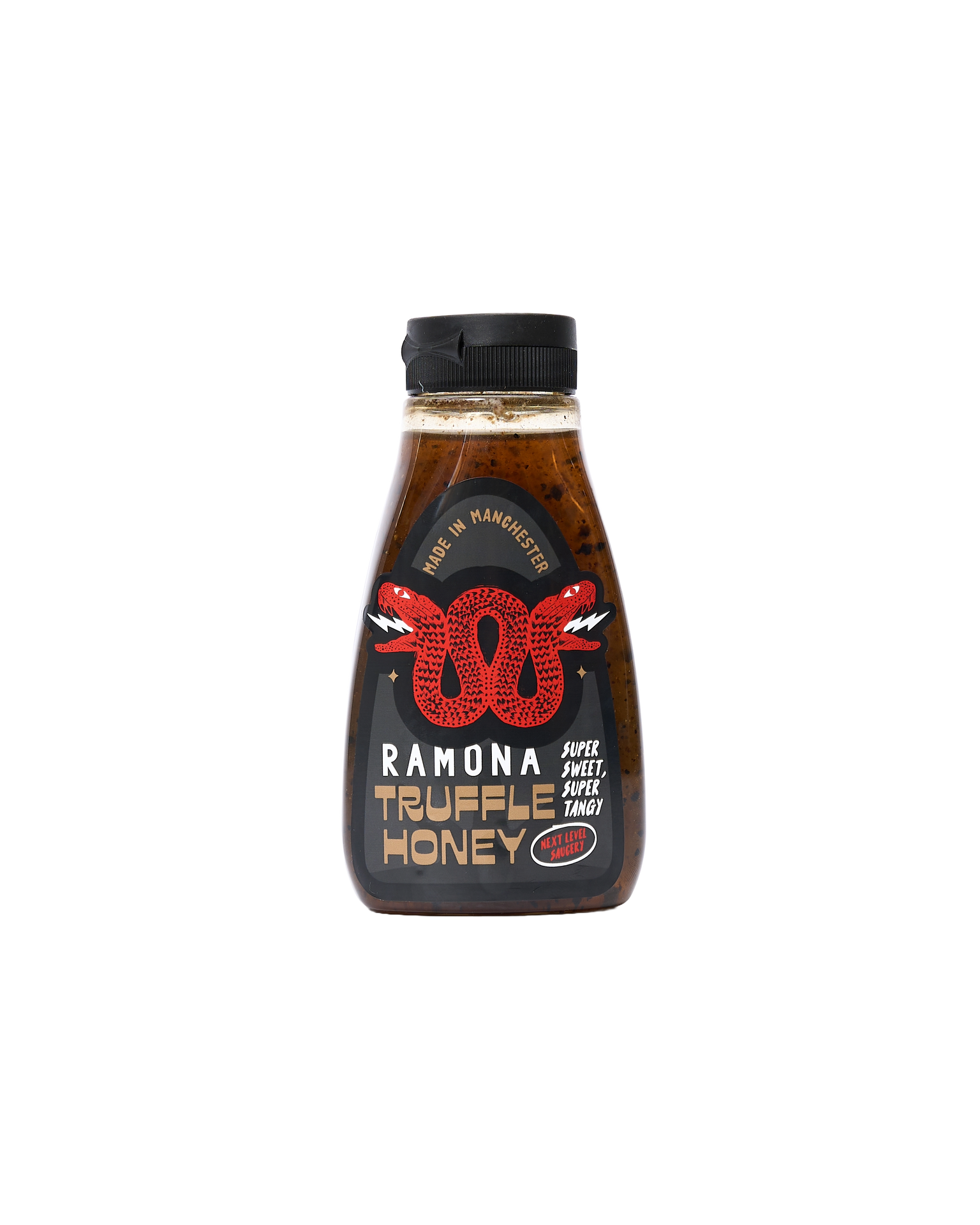 Ramona launched in 2020, bringing Detroit-style pizza to Manchester. This Truffle Honey is a handcrafted condiment, designed to perfectly complement their Detroit-style pies. It offers a perfect balance of rich sweetness, with a savoury depth and a lingering, indulgent finish. Best drizzled over pizza, but versatile enough to elevate anything it touches.