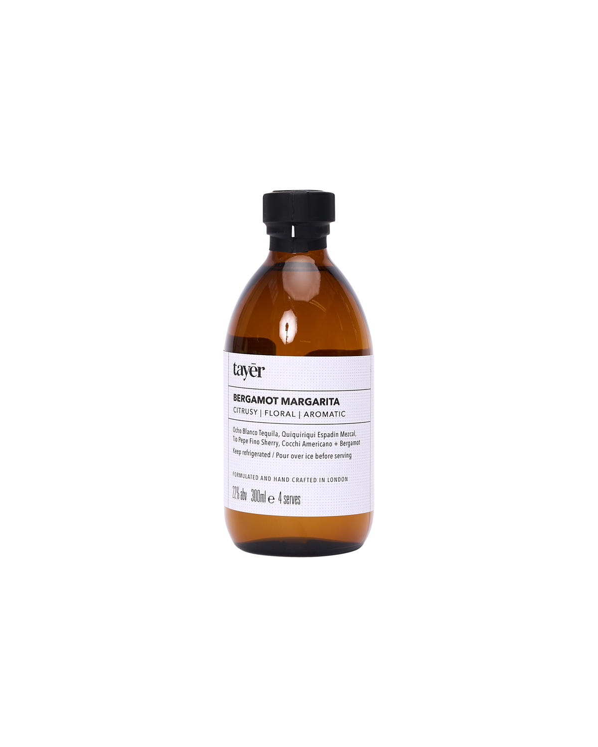 Tayēr RTD is part of the London cocktail bar Tayēr + Elementary. This bottled bergamot margarita cocktail is ready-to-drink and offers four servings. It is zesty, floral and citrusy. Serve chilled over ice. ABV: 22.0%.