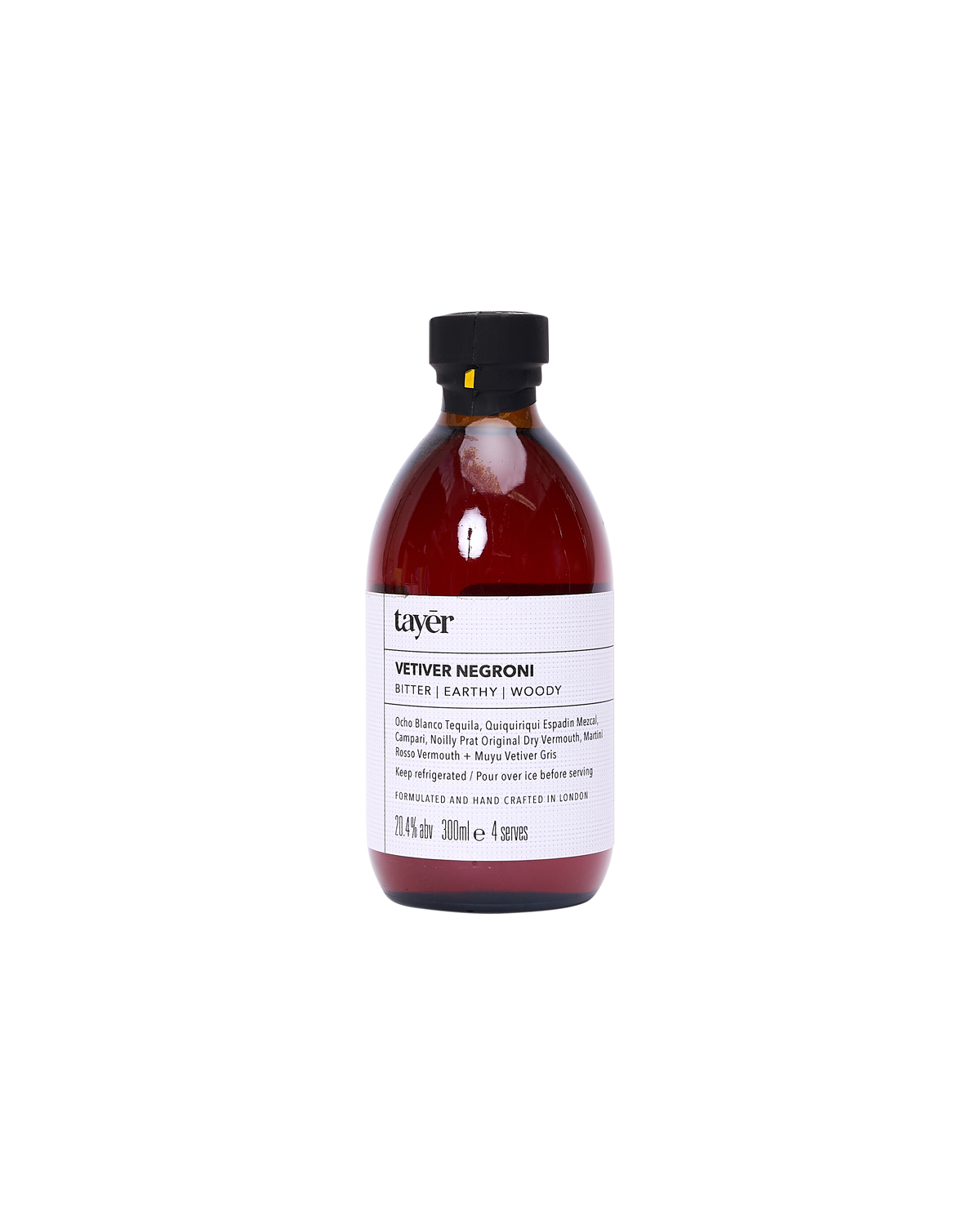 Tayēr RTD creates ready-to-drink, bottled cocktails that bring together classic flavours with natural ingredients. This vetiver negroni is housed in a bottle with four servings. It has bitter, earthy and woody notes. Best served chilled over ice. ABV: 20.4%.