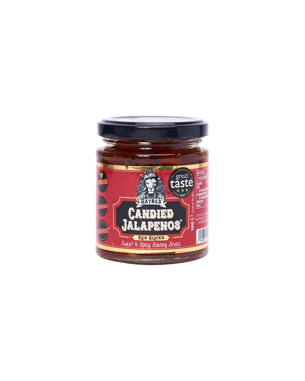 Haynes' red candied jalapeños burst with hot, tangy, sweet flavour.