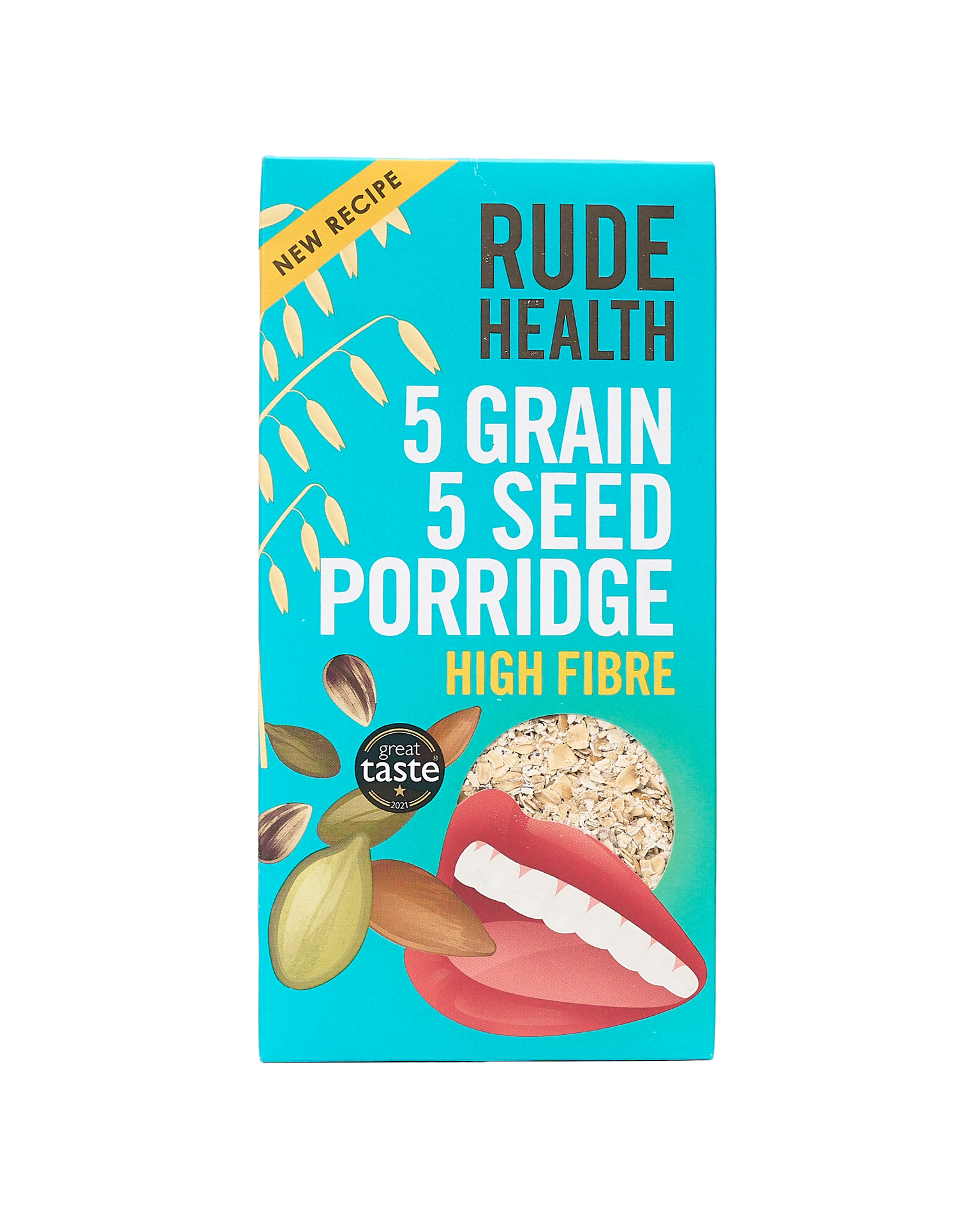 Rude Health believe good food and drink should rock your world. It should tantalise your taste buds and put a spring in your step. There are five seeds in this porridge, giving it loads of texture from tiny nibbles to bigger bites. The linseeds have a gently nutty, earthy flavour. And those two kinds of linseed are teamed up with eight other, similarly flavour packed ingredients. Five grains. Five seeds. High five.