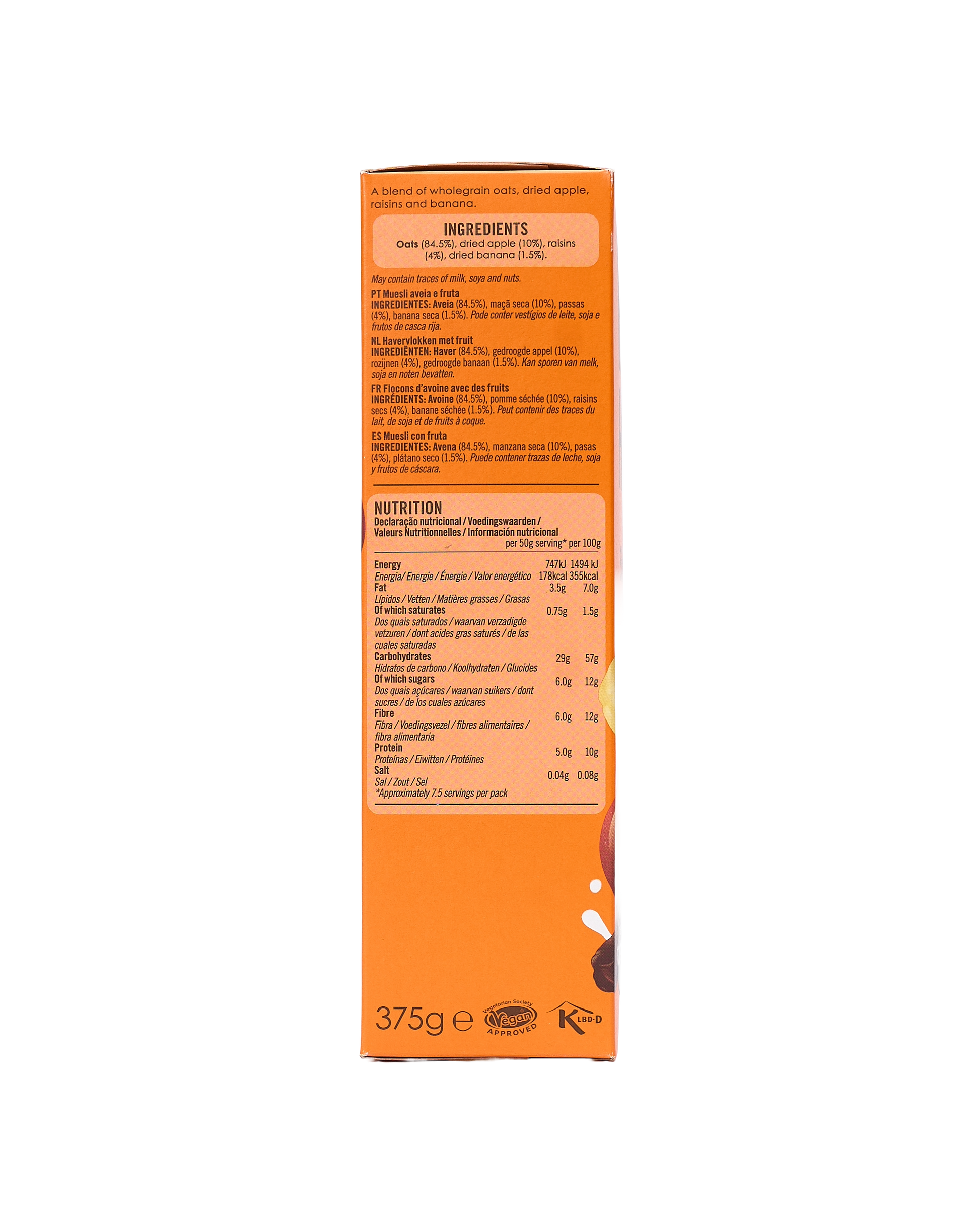 Oats (84.5%), Dried Apple (10%), Raisins (4%), Dried Banana (1.5%