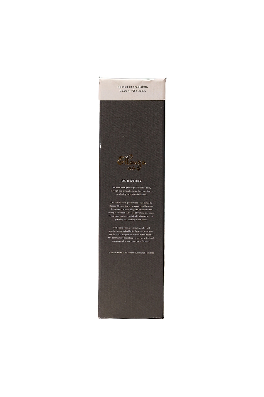 Ellouze1870 produces exceptional organic olive oil from their family groves in Tunisia. Their "Signature" blend is crafted each year in limited quantities from only the finest olives, carefully blended by their olive oil sommelier to achieve perfection. This elegant and versatile oil delivers well-balanced fruity flavors with a peppery finish and high polyphenol content. Perfect for enhancing meat, fish, and pasta dishes, or simply for dipping bread and creating vibrant salad dressings.