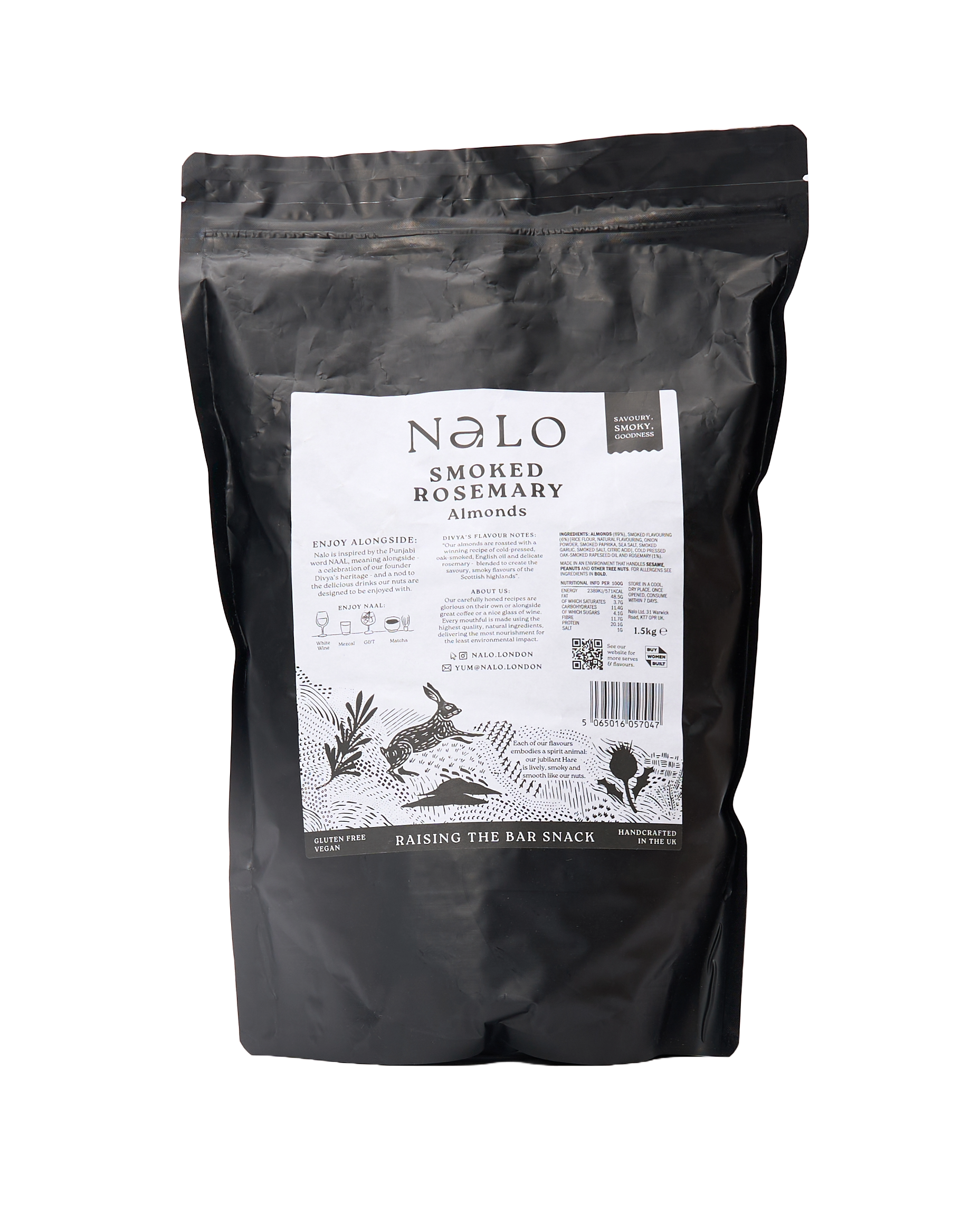 This bulk bag is filled with smoky almonds with a delicate rosemary twist. Their floral aroma and savoury flavour make them perfect for sharing, family-size snacking, or decanting into refill stations and pick & mix jars.