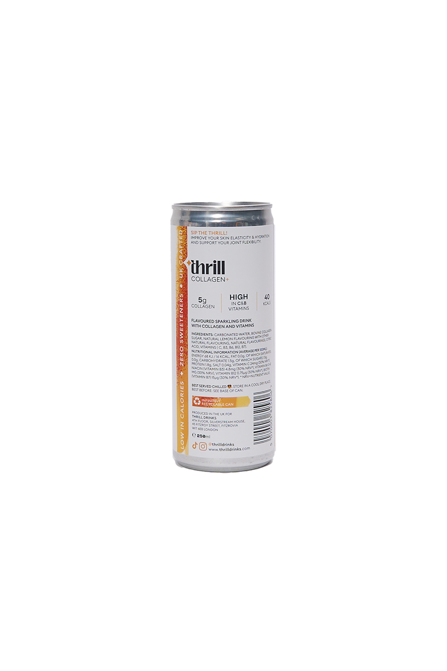 Thrill Collagen+ creates lightly sparkling functional water that combines wellness with refreshment. Their innovative blend features 5g of collagen and essential vitamins B & C to support skin elasticity, nail and hair strength, and joint flexibility. With a deliciously refreshing lemon and elderflower flavour, they're making it easier than ever to nourish your body while enjoying a naturally revitalising drink.