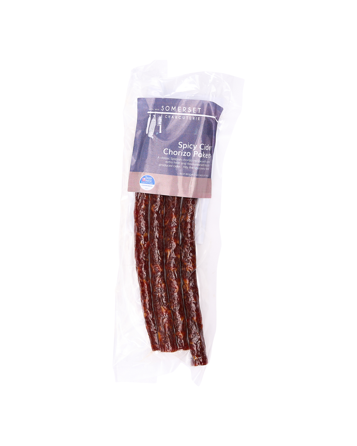 A snacking sausage that brings together delicious local cider with spicy, paprika-hued chorizo. It's spicy, and very moreish.
