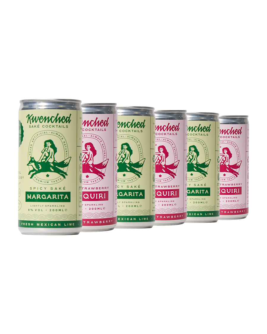 Kwenched craft premium canned cocktails using award-winning Japanese saké and bold, fresh flavours. This duo brings together a Spicy Saké Margarita, blending smooth saké with sharp Mexican lime and jalapeño heat, and a Saké Strawberry Daiquiri, mixing saké with sweet strawberry and fresh lime for a bright, refreshing twist. Serve chilled over ice in a tumbler or martini glass with garnish, or sip straight from the can for an easy hit of flavour.