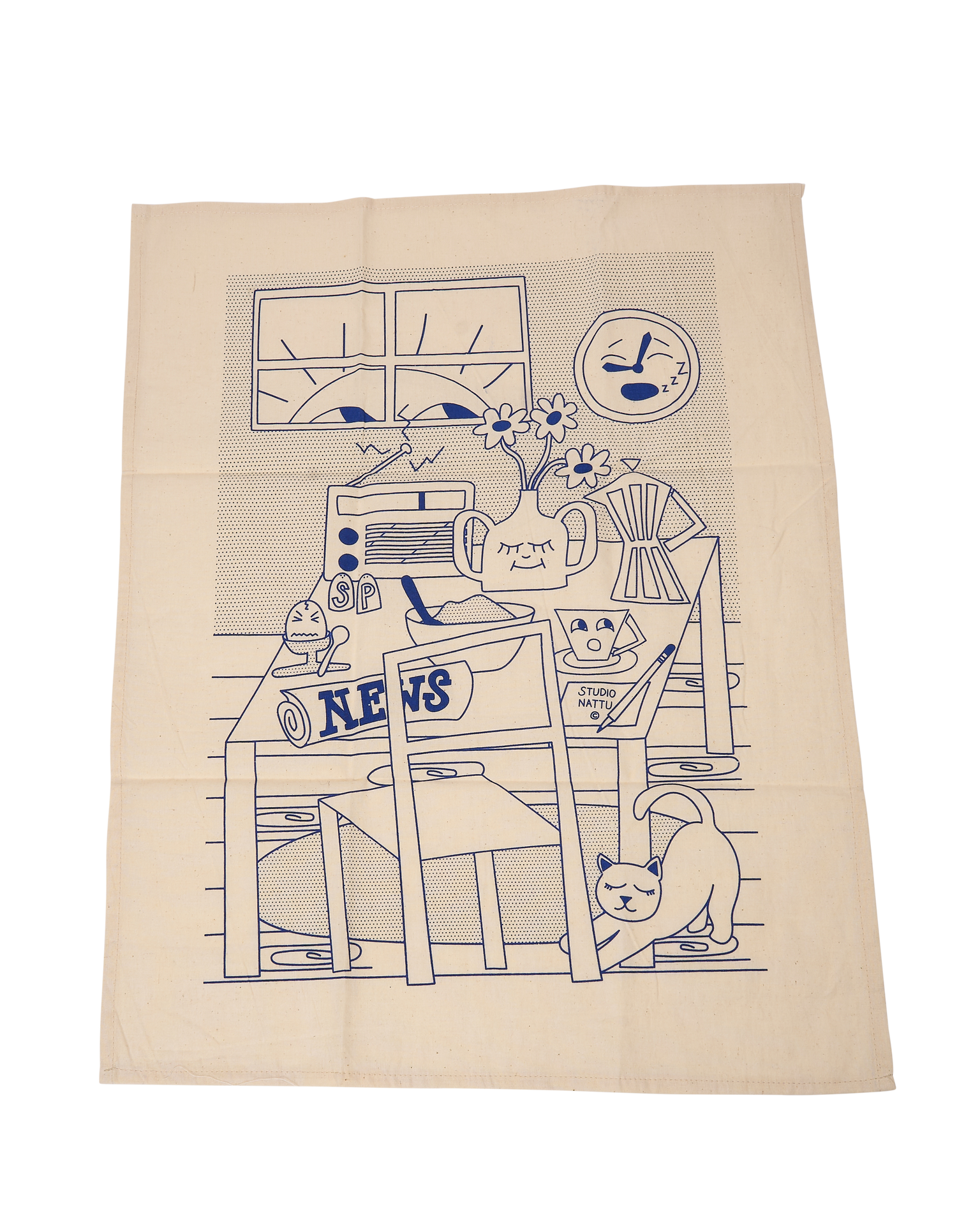 Studio Nattu’s playful designs are all drawn and created by founder Nataliya Vitorovich. Handmade from 100% Greek cotton, this dark blue tea towel has been screen printed in Athens with an illustration of a blissful breakfast. It is machine washable. Hang as artwork or use it to add colour in the kitchen.