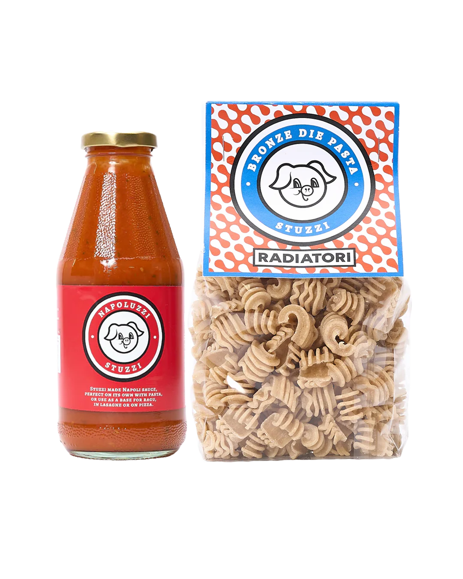 Everything you need for a proper Napoli-style pasta. Stuzzi’s Radiatore is all about holding onto flavour—short, ruffled pasta with deep grooves made to catch every bit of sauce. Pair it with Napoluzzi, a classic tomato sauce made with sweet Italian tomatoes, basil, garlic and olive oil. A simple, solid combo that delivers on taste every time.