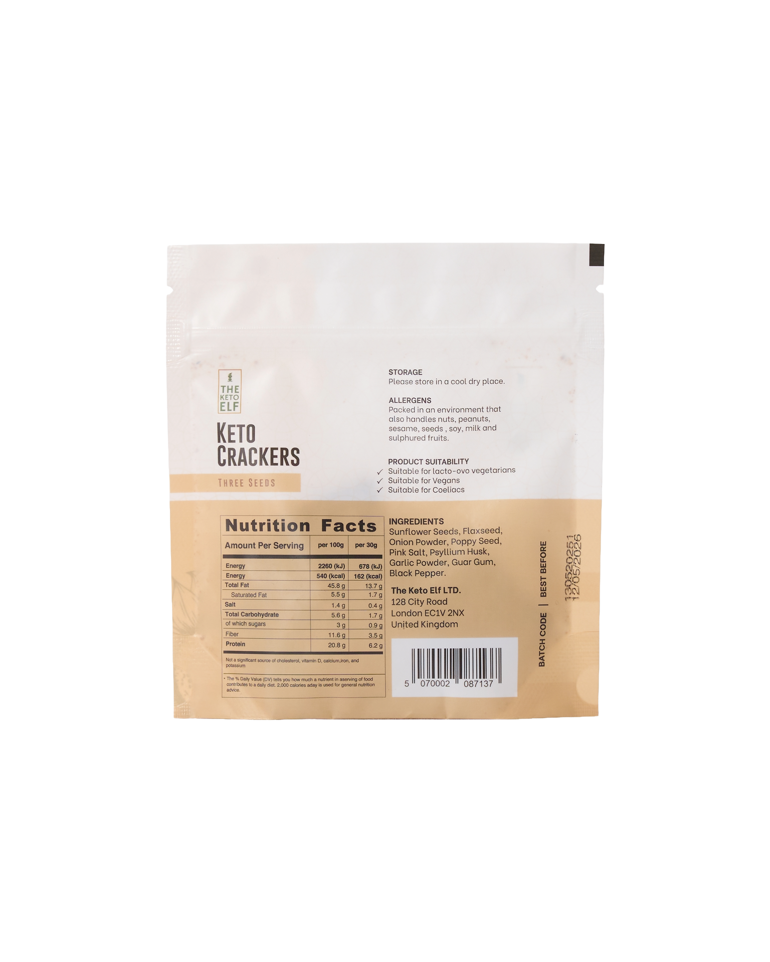 These flavour-packed crackers are made with a nutrient-dense base of seeds, which are rich in Omega 3s. The ingredients are handpicked to deliver on nutrition, taste and convenience. They're gluten-free, keto-friendly and vegan, too.