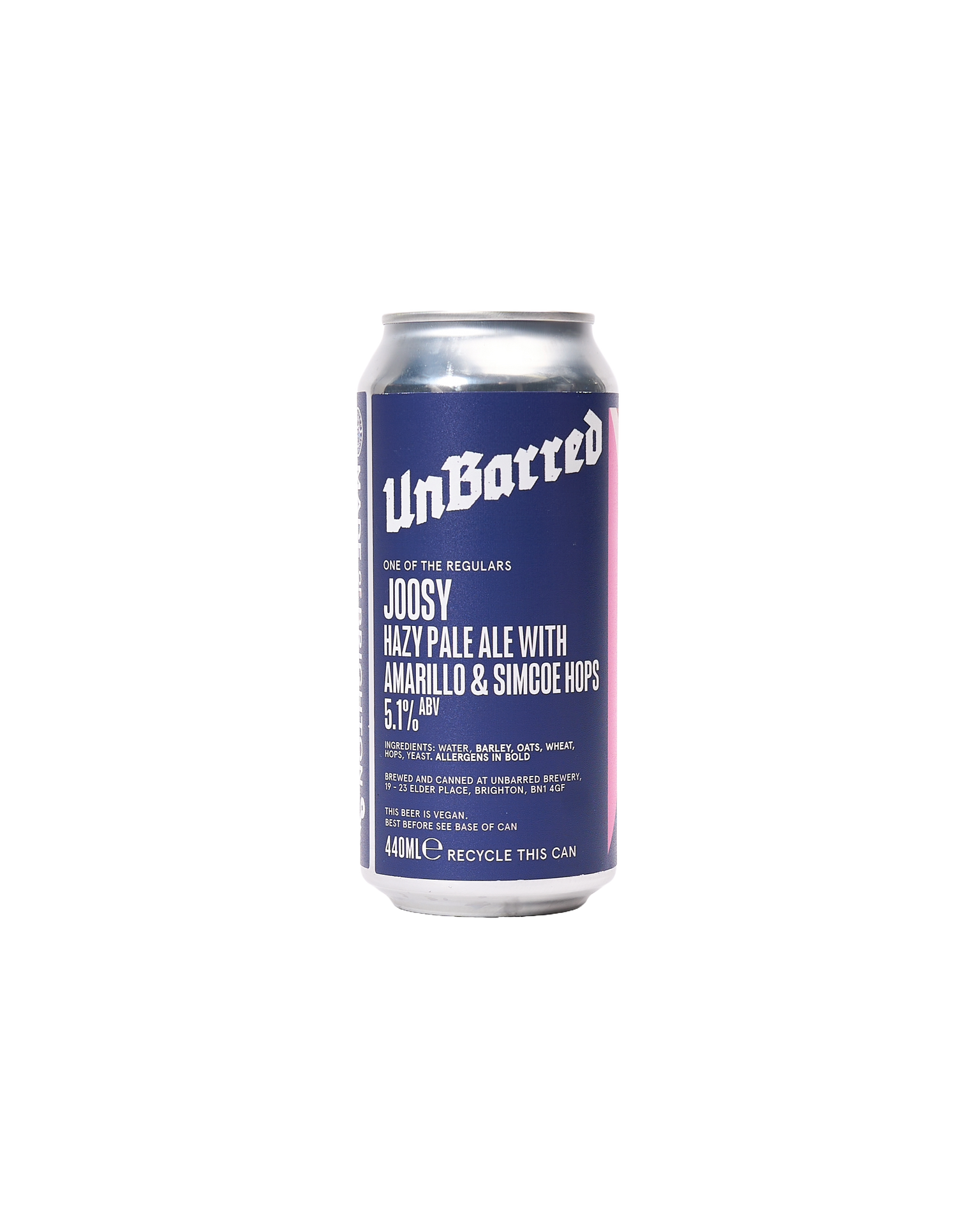 UnBarred Brewery in Brighton & Hove brews award-winning beers, embracing the city’s creative energy and bold collaborations to “Be UnBarred” in everything they do. Joosy, their flagship hazy pale ale, bursts with bold flavour. Leading with intense notes of citrus, sweet tangerine, grapefruit, and stone fruits, it’s crafted with a blend of Simcoe and Amarillo hops, a generous malt bill packed with oats, and UnBarred’s house yeast for a smooth, full-bodied sip that’s endlessly crushable. ABV: 5.1%.